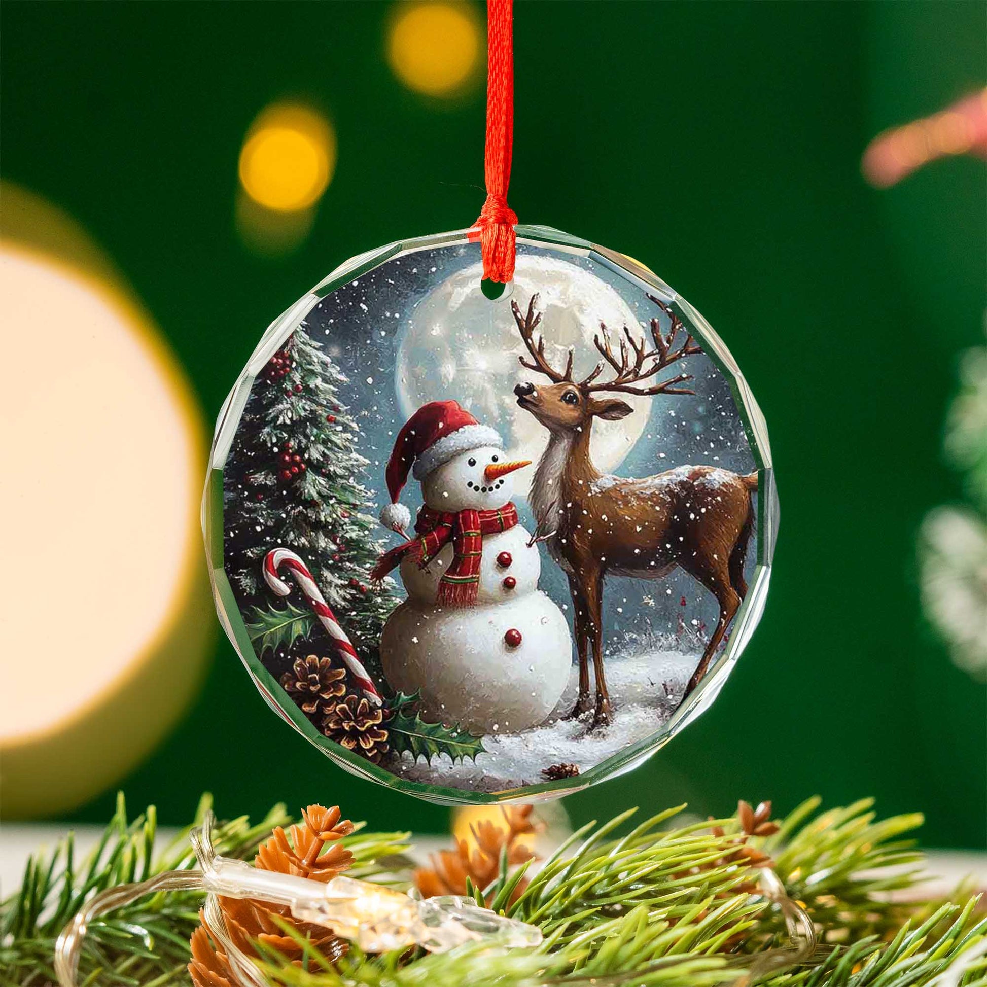 Netecom Christmas Snowman & Reindeer Glass Ornament – Holiday Tree Decor, Ideal Gift Keepsake, 3 in