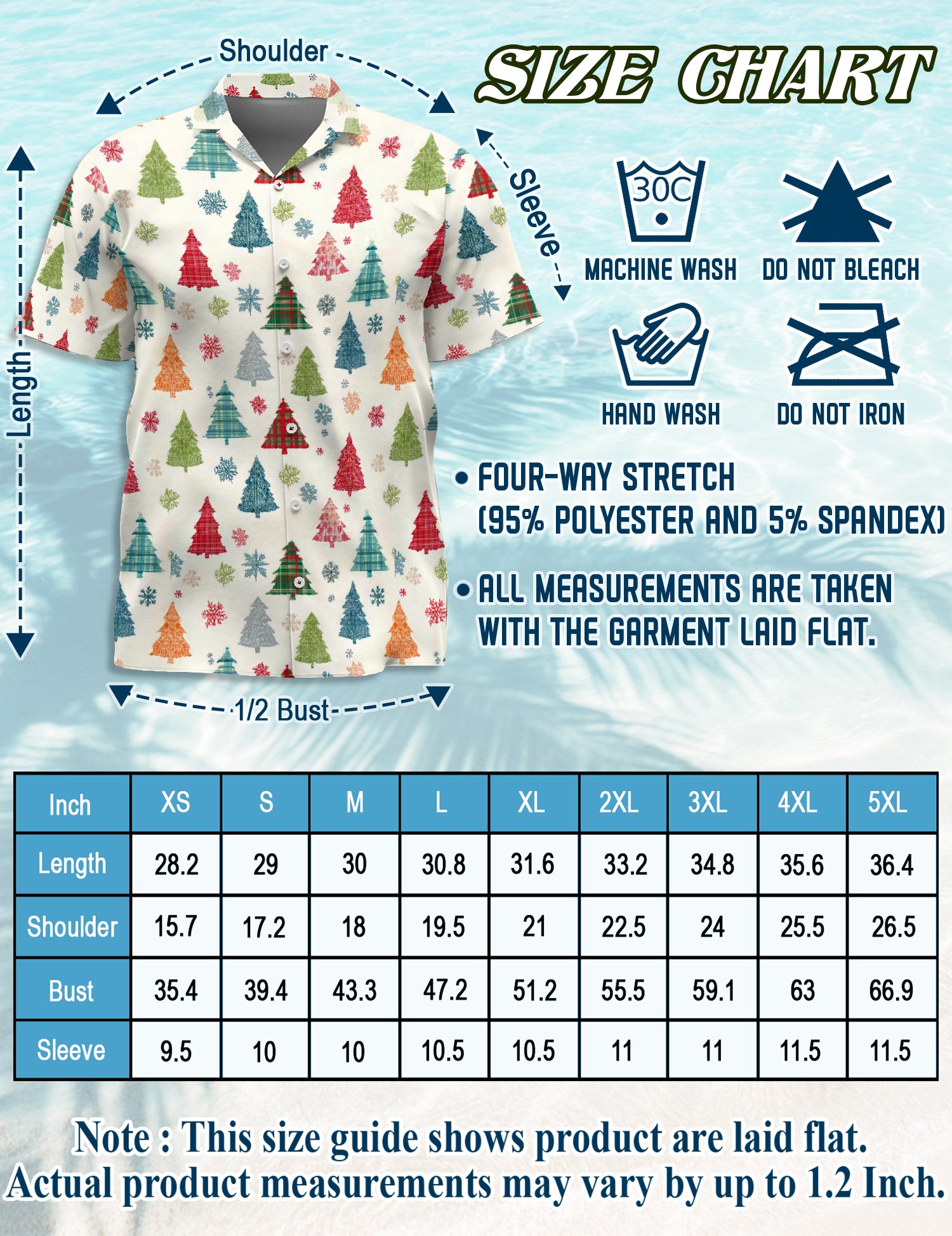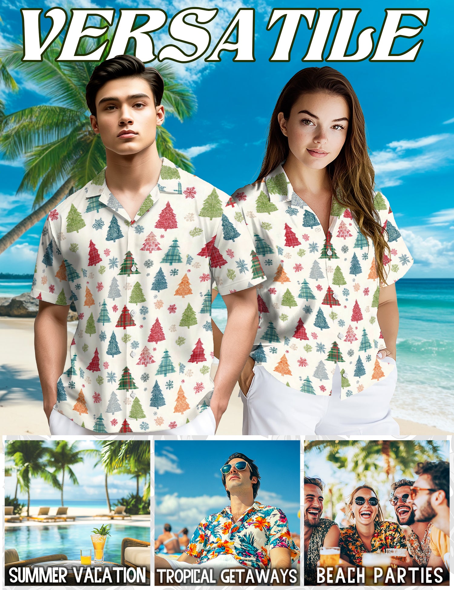 Netecom Christmas Tree Pattern Hawaiian Shirt for Men, Colorful Xmas Plaid Trees Button Down Summer Short Sleeve Shirts