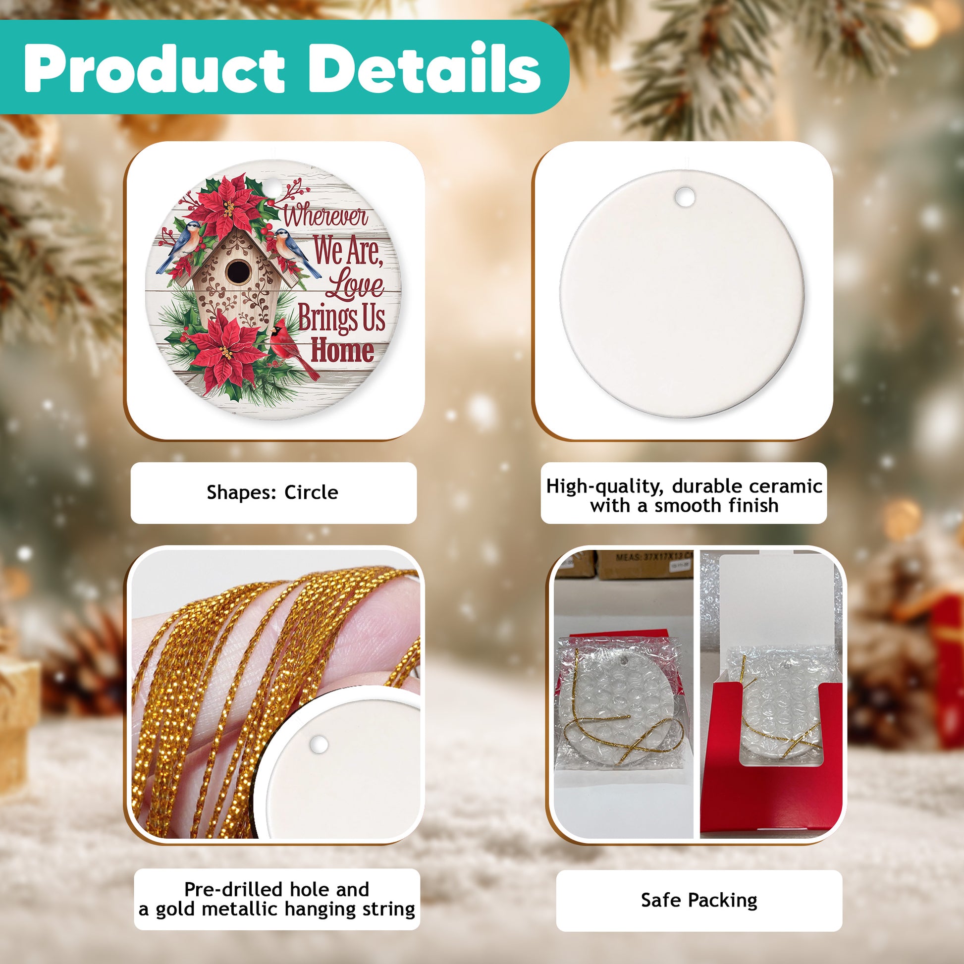 HIGH-QUALITY CERAMIC: Crafted from durable ceramic with a smooth finish, this ornament measures about 3.3 x 3.3 inches—perfect for display or gifting. The advanced printing delivers bright, crisp, high-definition designs that resist fading, offering a more elegant look compared to wooden decorations.