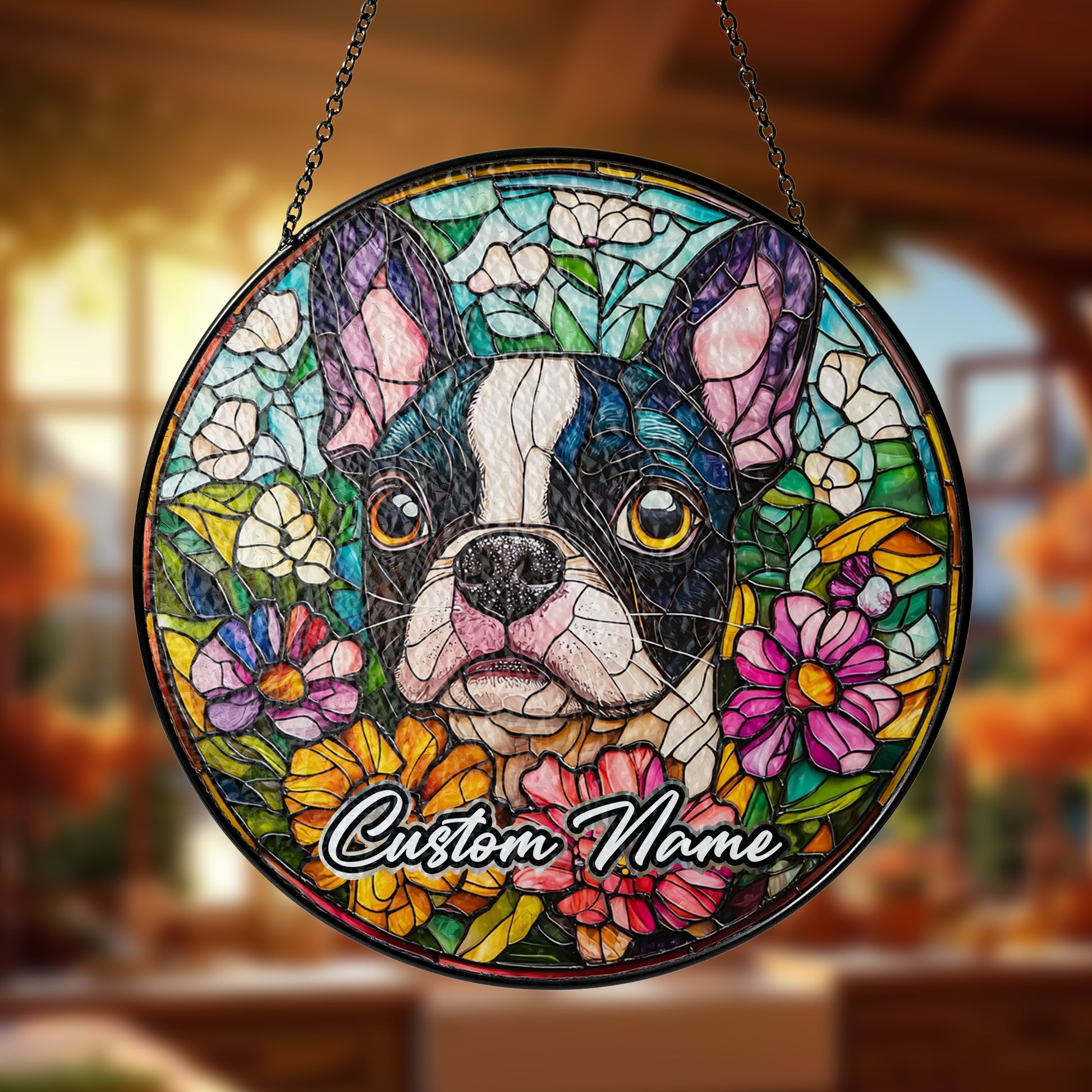 Netecom Custom Boston Terrier Memorial Ornament, Personalized Stained Glass Suncatcher, Pet Loss Remembrance Gift, Christmas Decoration
