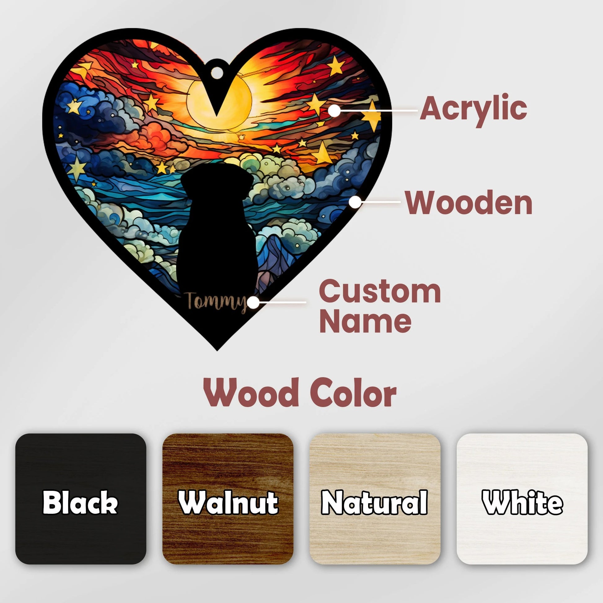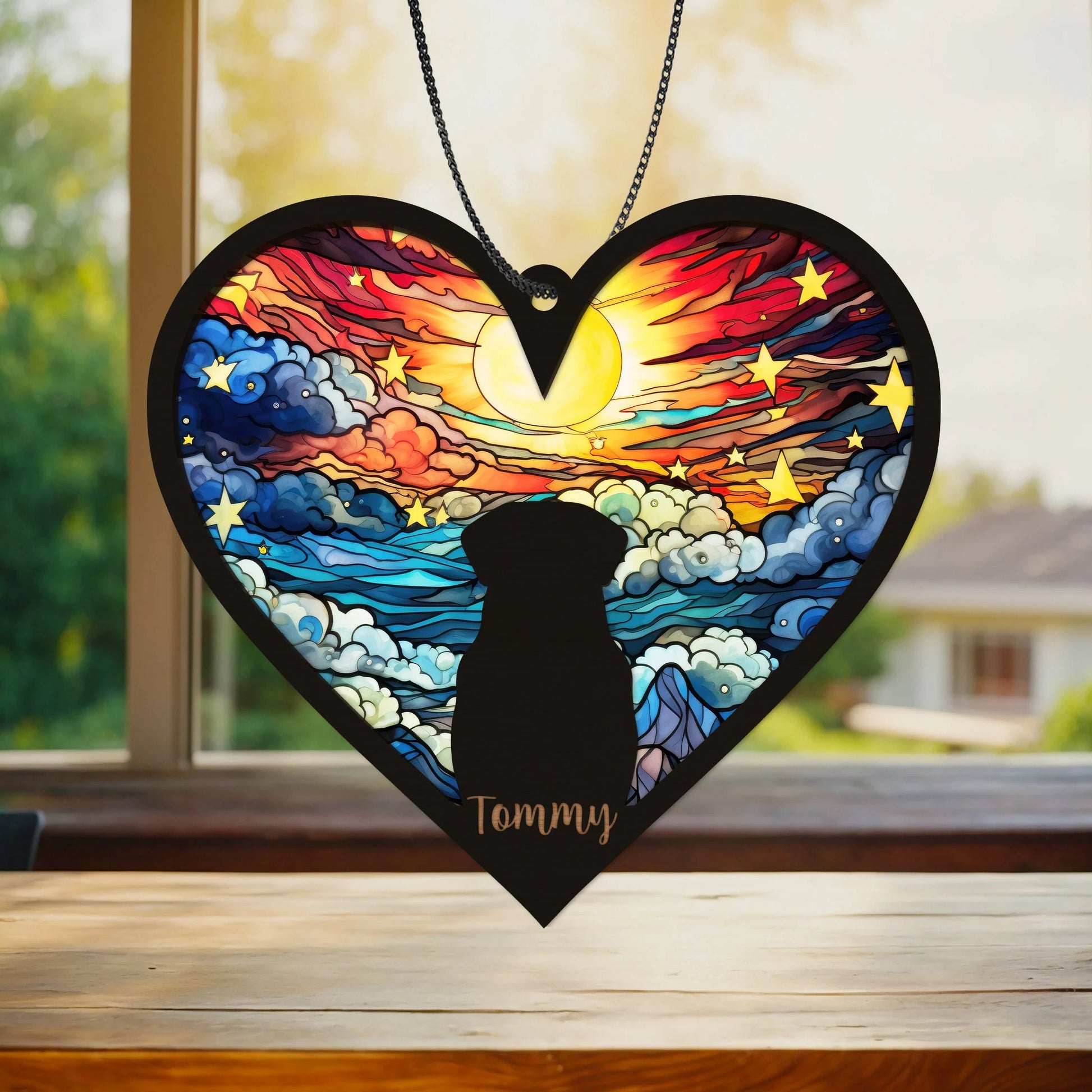 Customizable Memorial: Personalize this memorial suncatcher with your pet’s name, breed, and background to create a one-of-a-kind tribute.