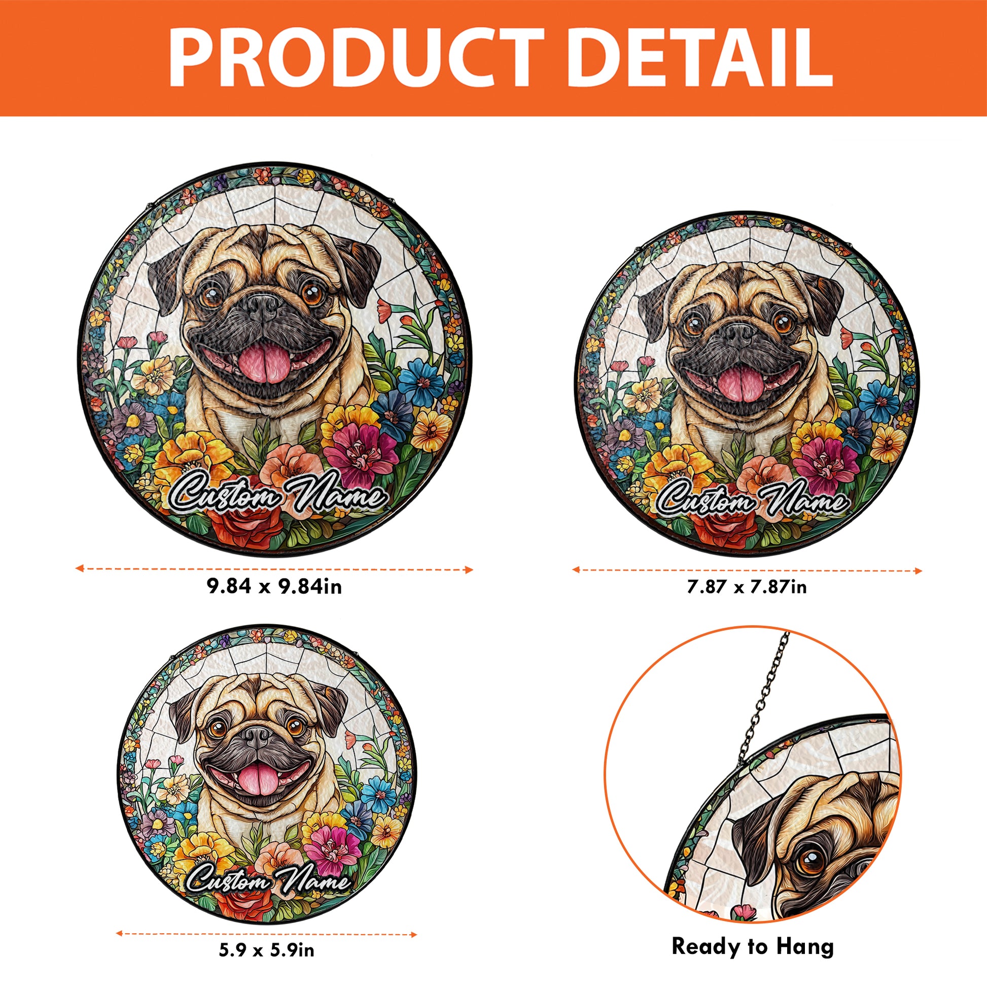Netecom Custom Pug Dog Stained Glass Ornament, Personalized Memorial Suncatcher, Pet Loss Sympathy Gift, Christmas Decoration