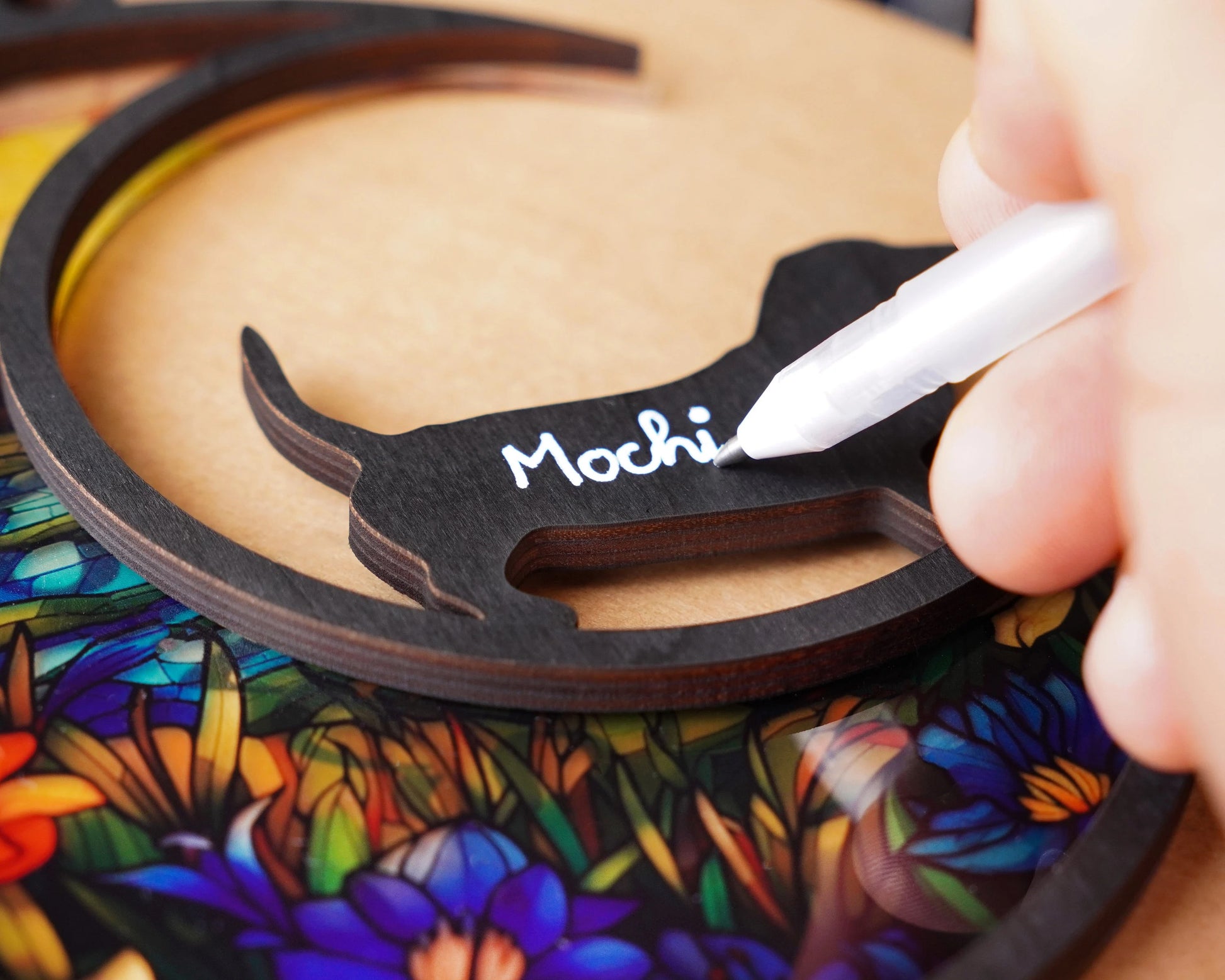 Our stained acrylic window hangings provide a beautiful way to remember your cherished pet. Hang this sun catcher: