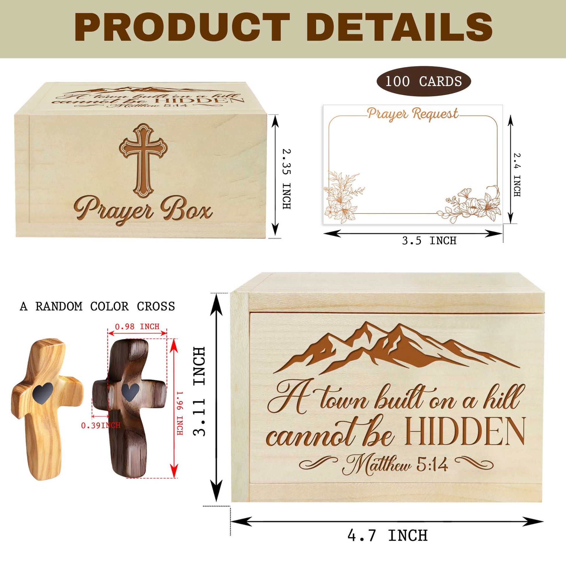 Designed with a warm natural wood finish and timeless faith-inspired details, this prayer box is suitable for daily reflection, quiet moments, or spiritual encouragement.