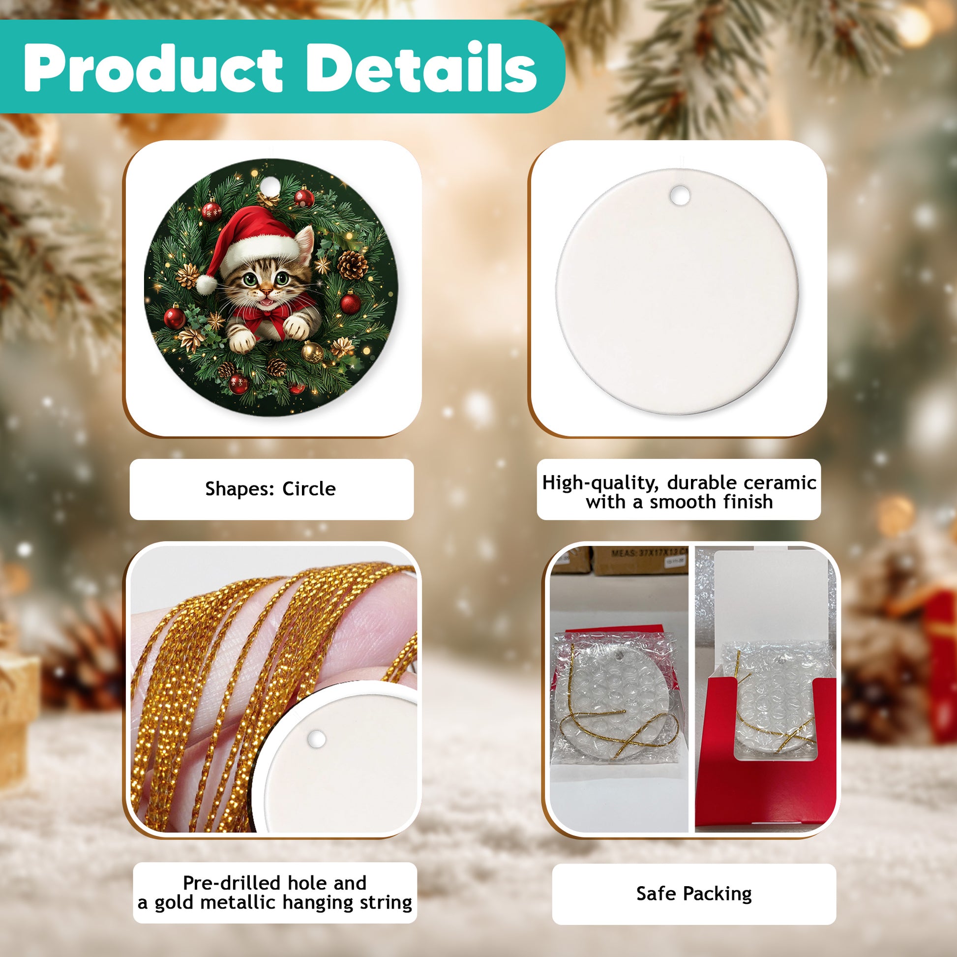 EASY TO USE: Comes with a pre-attached gold cord, making it simple to hang and display. Perfect for your Christmas tree, mantel, windows, car mirror, or any special spot in your home—bringing warmth and festive charm to your holiday celebrations.