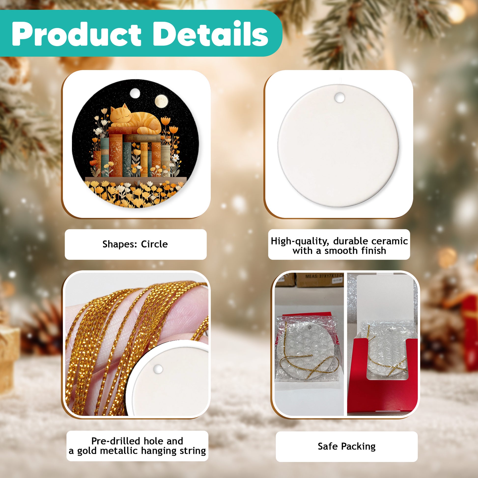 HIGH-QUALITY CERAMIC: Crafted from durable ceramic with a smooth finish, this ornament measures about 3.3 x 3.3 inches—perfect for display or gifting. The advanced printing delivers bright, crisp, high-definition designs that resist fading, offering a more elegant look compared to wooden decorations.