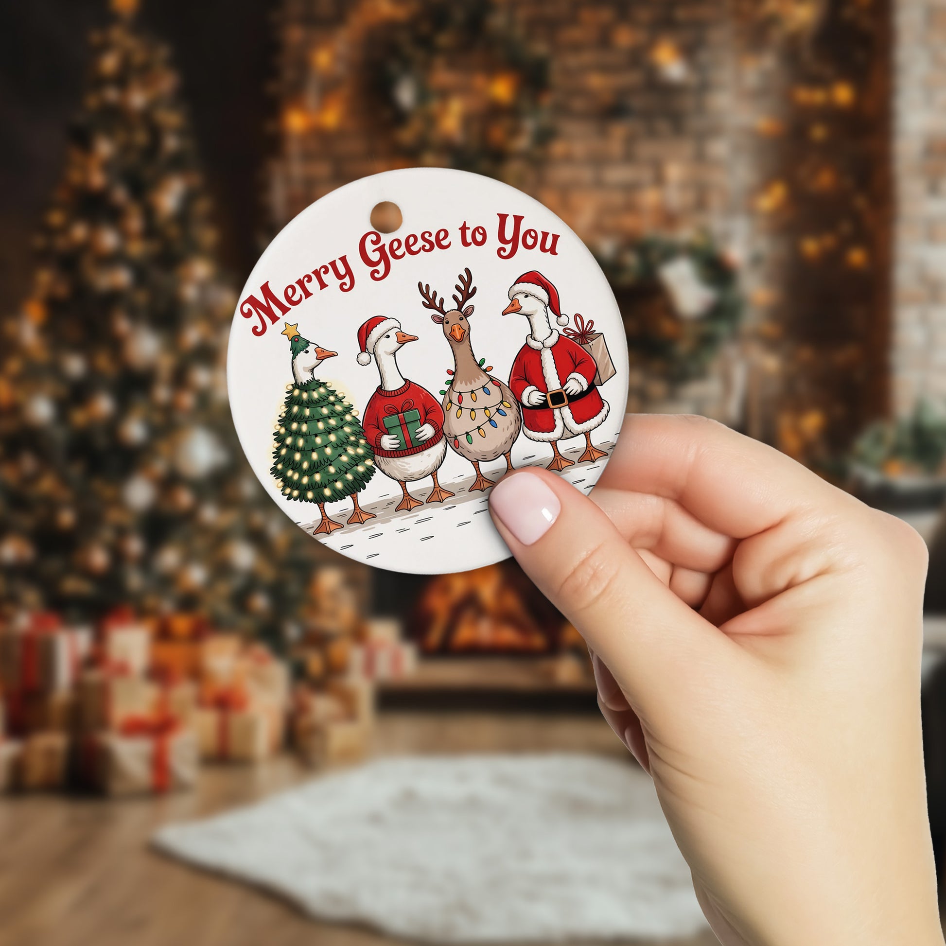 Netecom Cute Goose Family Ornaments, Merry Geese to You Ceramic Ornament for Christmas Tree Hanging Decorations Gift, Farmhouse Decor, Gifts for Farmer, Holiday Party Present