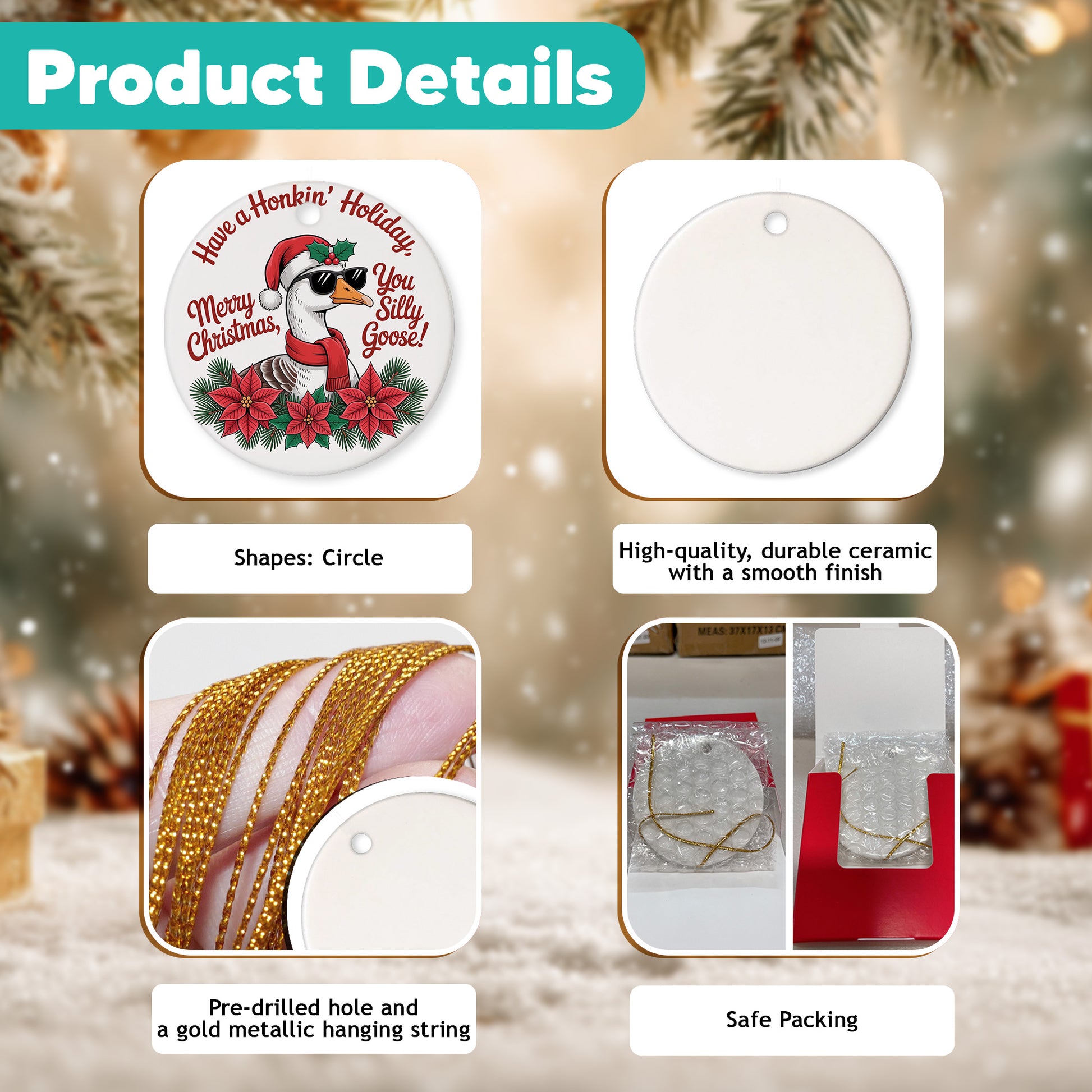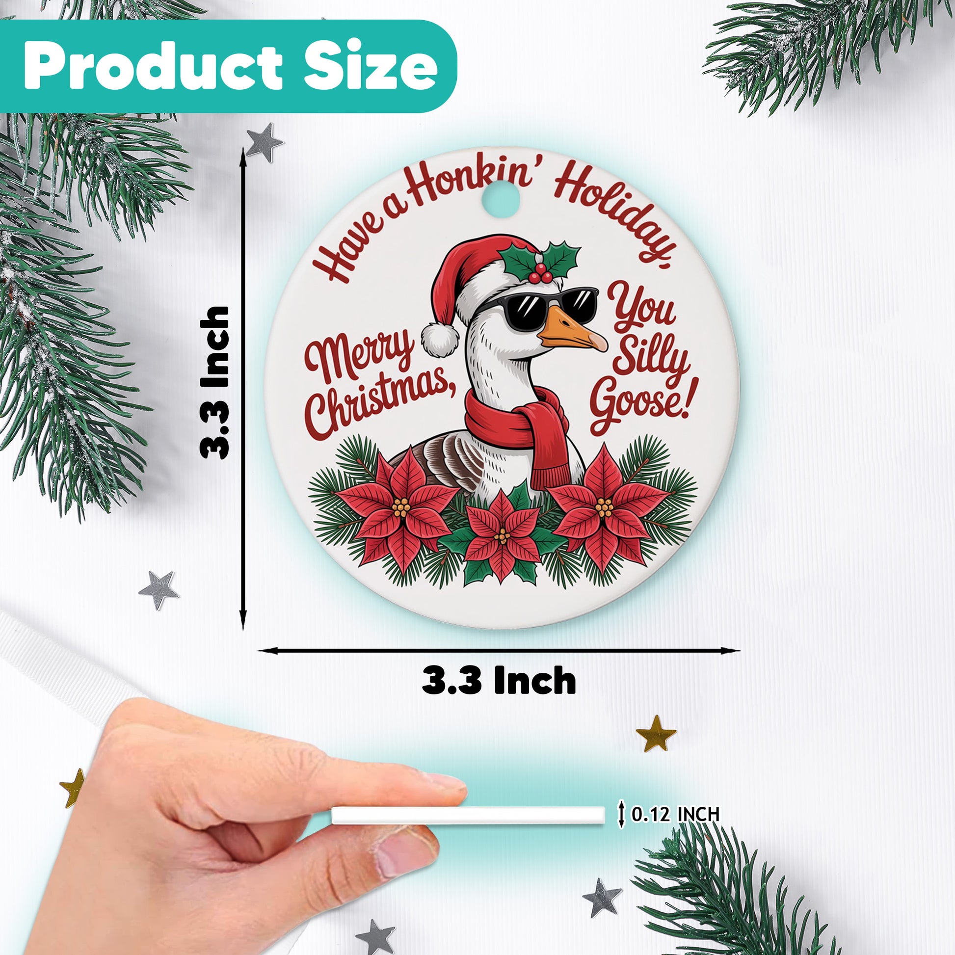 Netecom Cute Goose in Sunglasses Ornament, You Silly Goose Merry Christmas Ceramic Ornament for Christmas Tree Hanging Decorations Gift, Farmhouse Decor, Gifts for Farmer, Holiday Party Present
