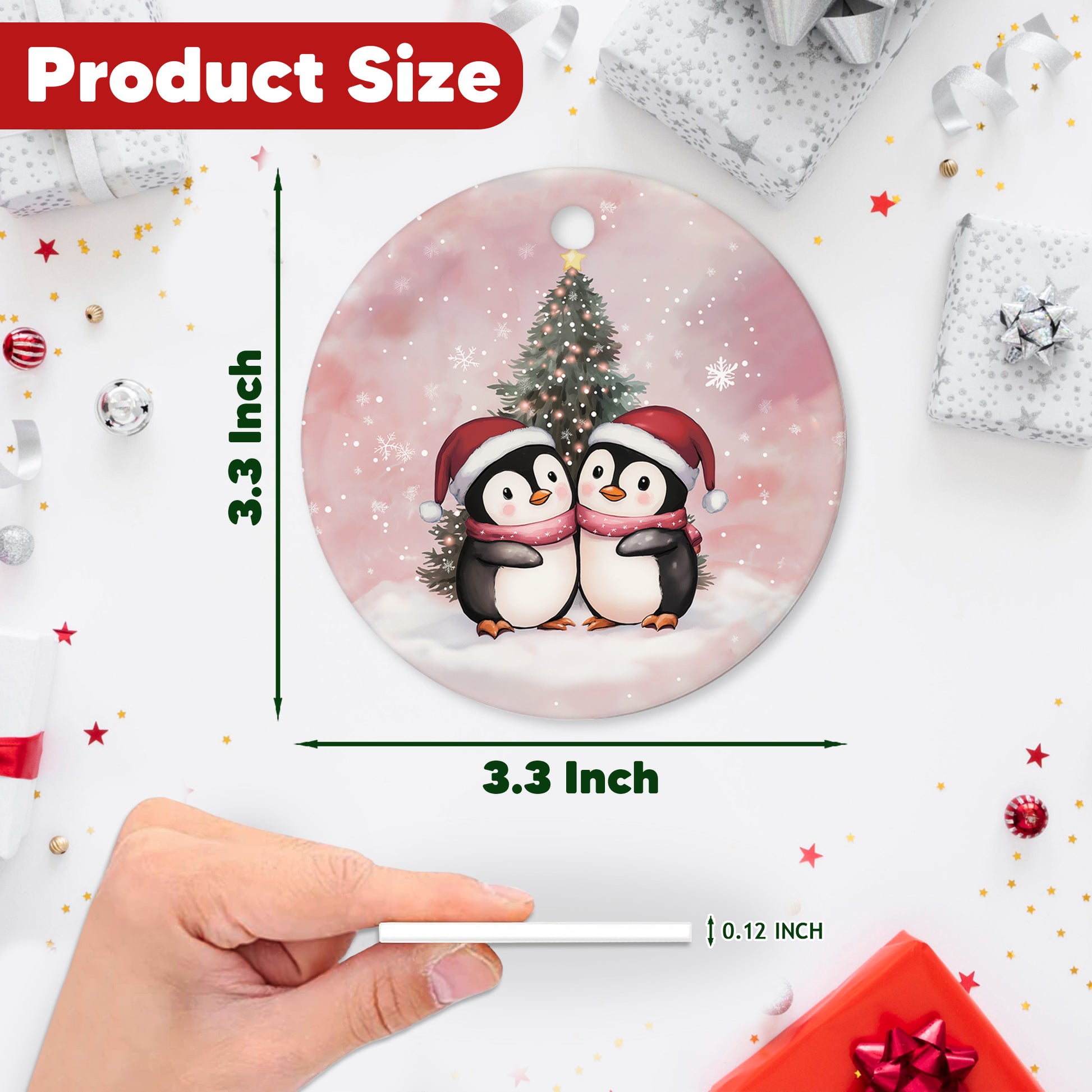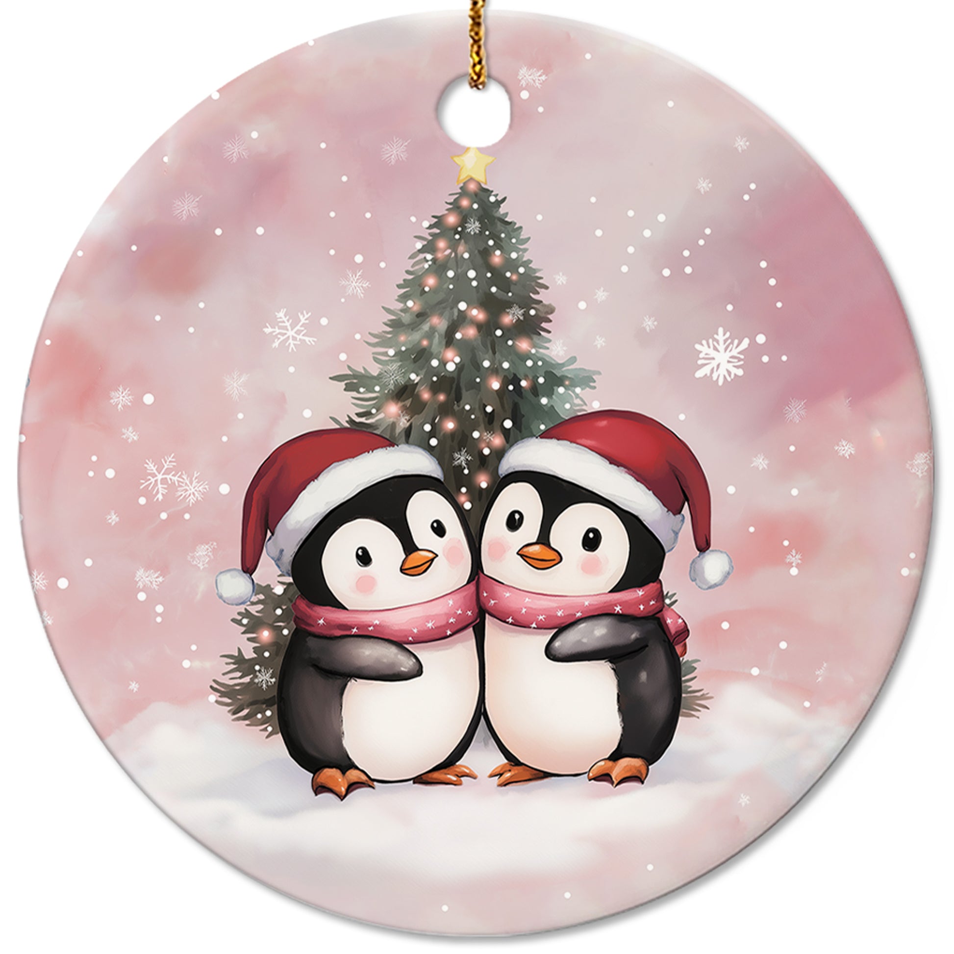 Netecom Cute Penguin Couple Pink Ornament, Ceramic Romantic Christmas Keepsake Ornament for Xmas Tree Decorations, Penguin Lover Gift, Gifts for Holiday, Party, Home Decor