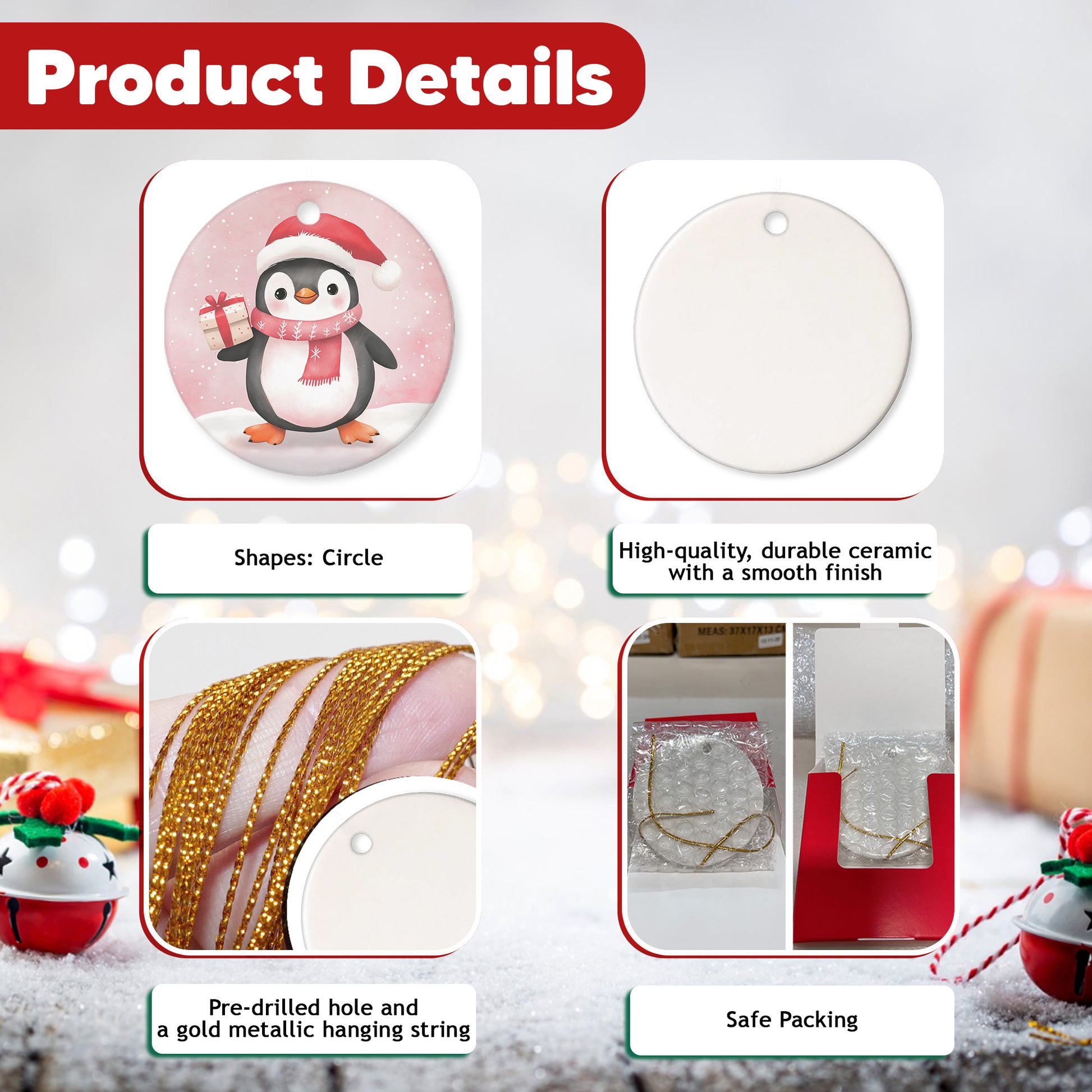 HIGH-QUALITY CERAMIC: Crafted from durable ceramic with a smooth finish, this ornament measures about 3.3 x 3.3 inches—perfect for display or gifting. The advanced printing delivers bright, crisp, high-definition designs that resist fading, offering a more elegant look compared to wooden decorations.