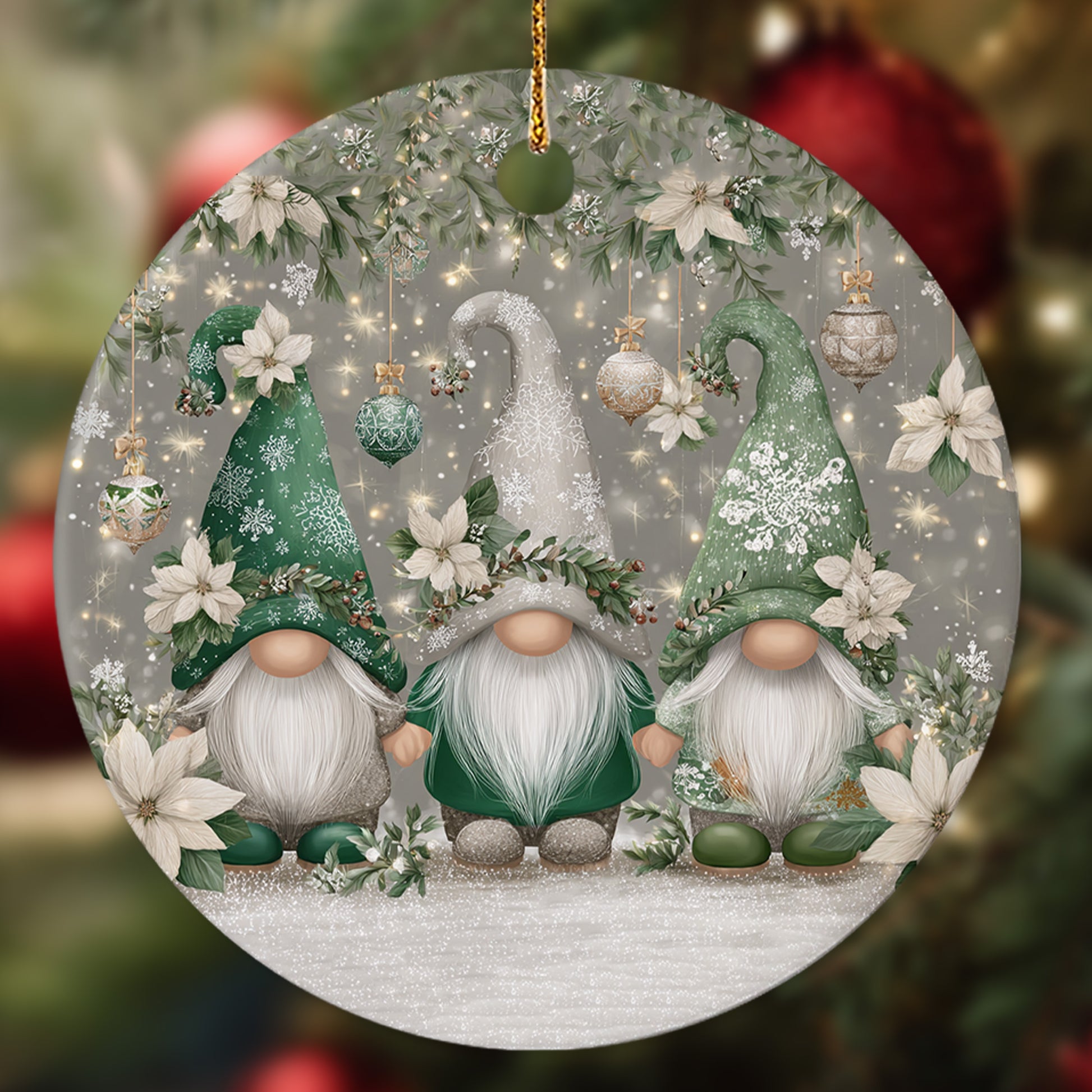 Netecom Cute Siver Gnome Floral Christmas Ornament, Adorable Scandinavian Tomte Ceramic Ornament for Christmas Tree Hanging Decorations Gift, Gnome Lover Gifts, Holiday Party Present