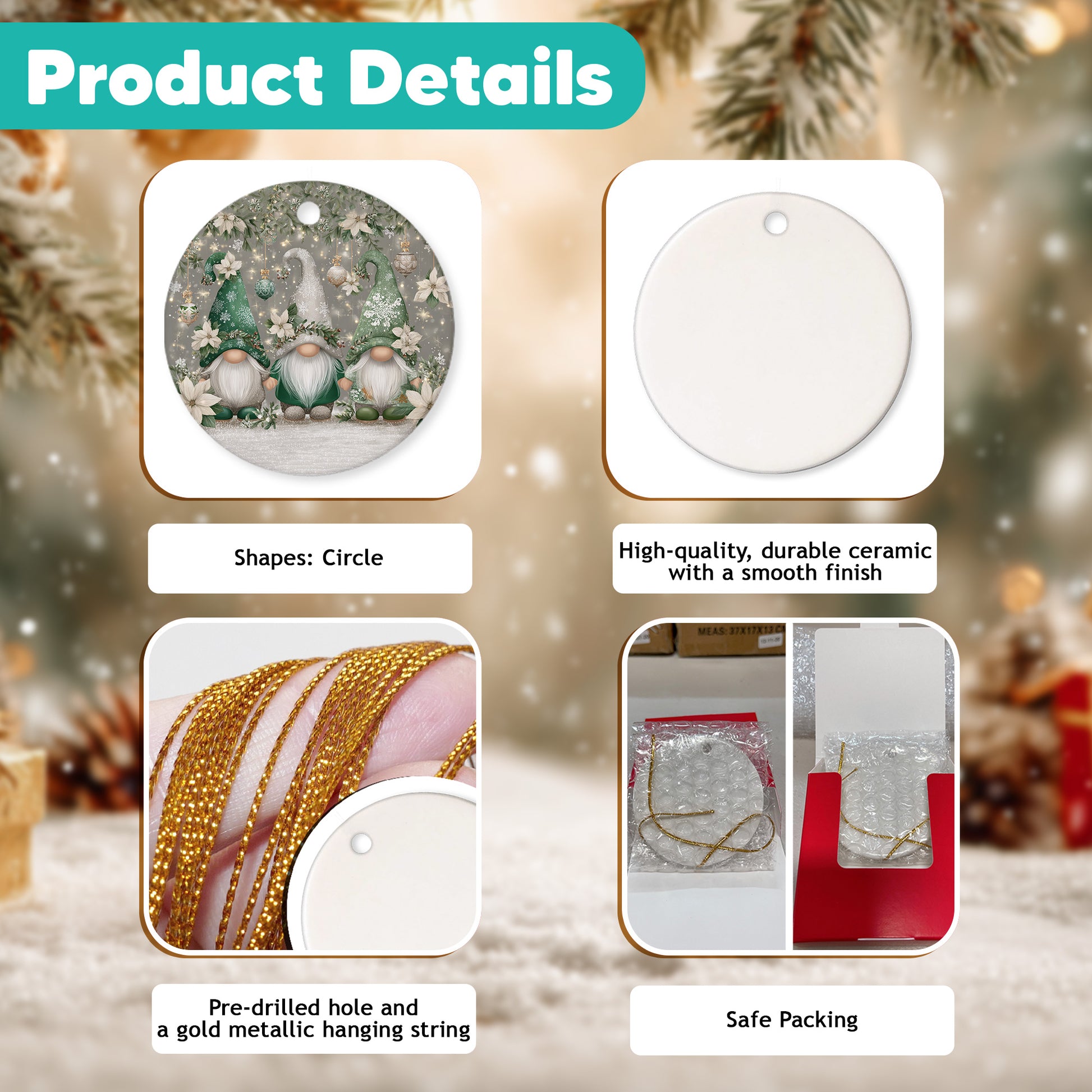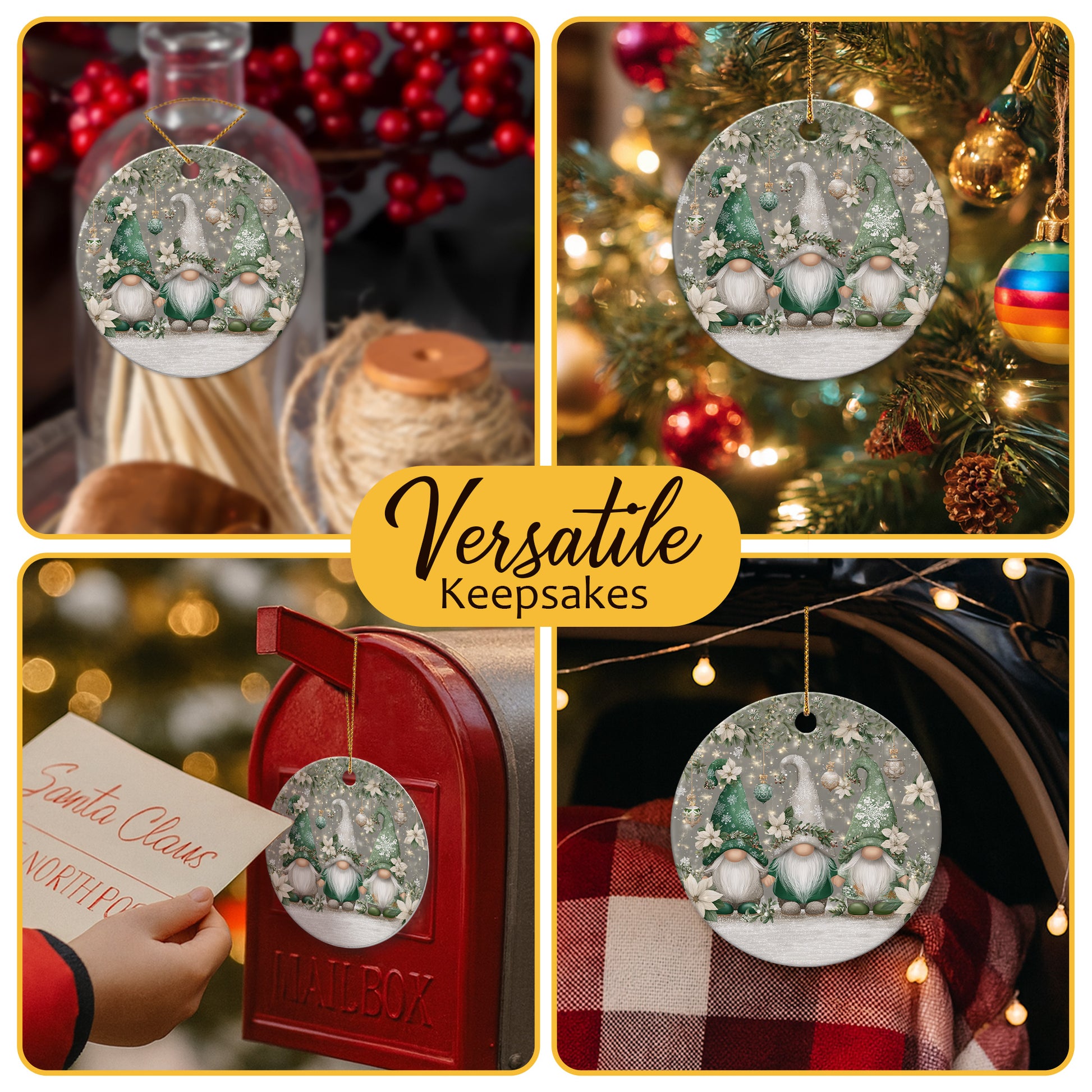 EASY TO USE: Comes with a pre-attached gold cord, making it simple to hang and display. Perfect for your Christmas tree, mantel, windows, car mirror, or any special spot in your home—bringing warmth and festive charm to your holiday celebrations.