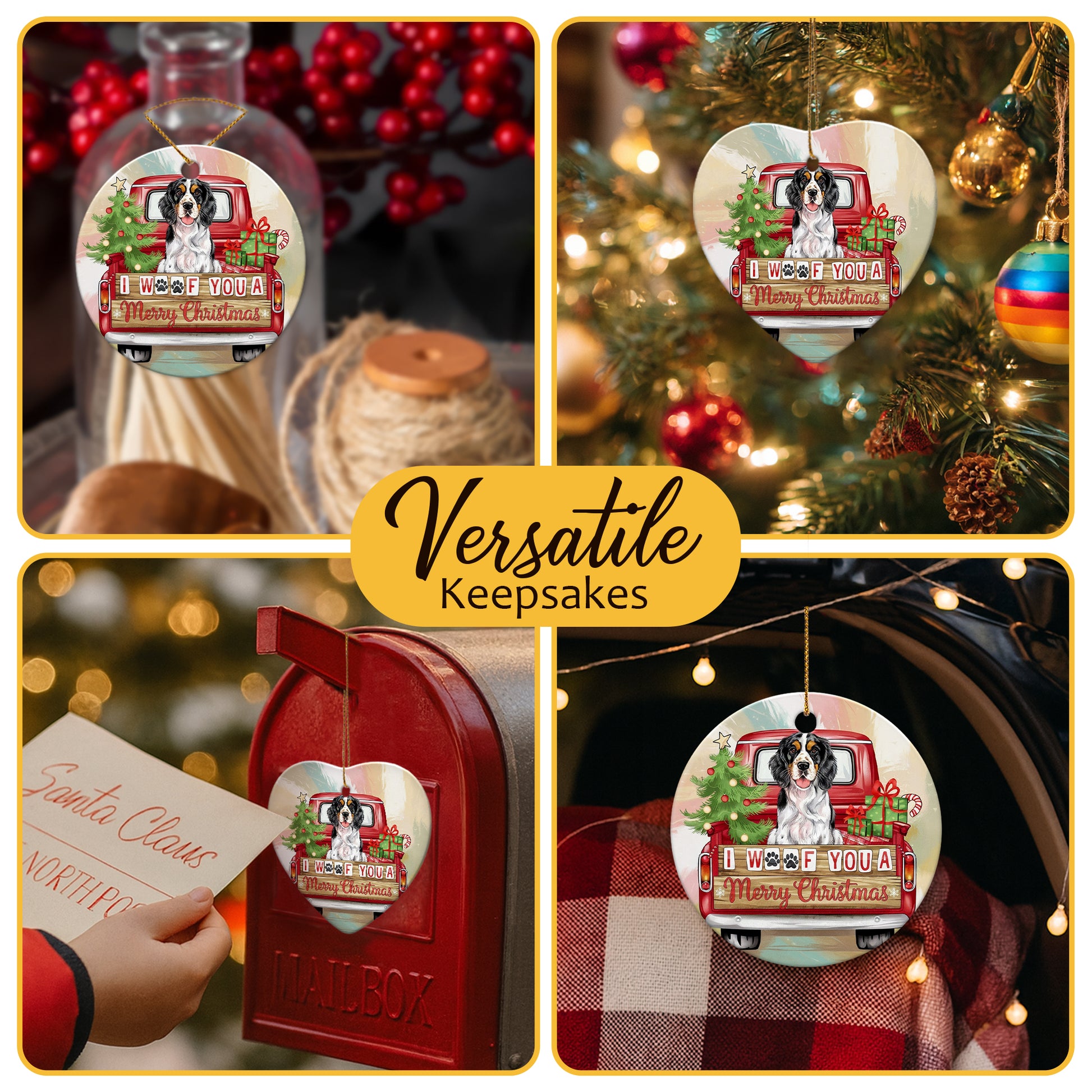 Netecom Cute Spaniel in Red Truck Ornament, I Woof You a Merry Christmas Ceramic Ornament for Christmas Tree Hanging Decorations Gift, Dog Lover Gifts, Holiday Party Present