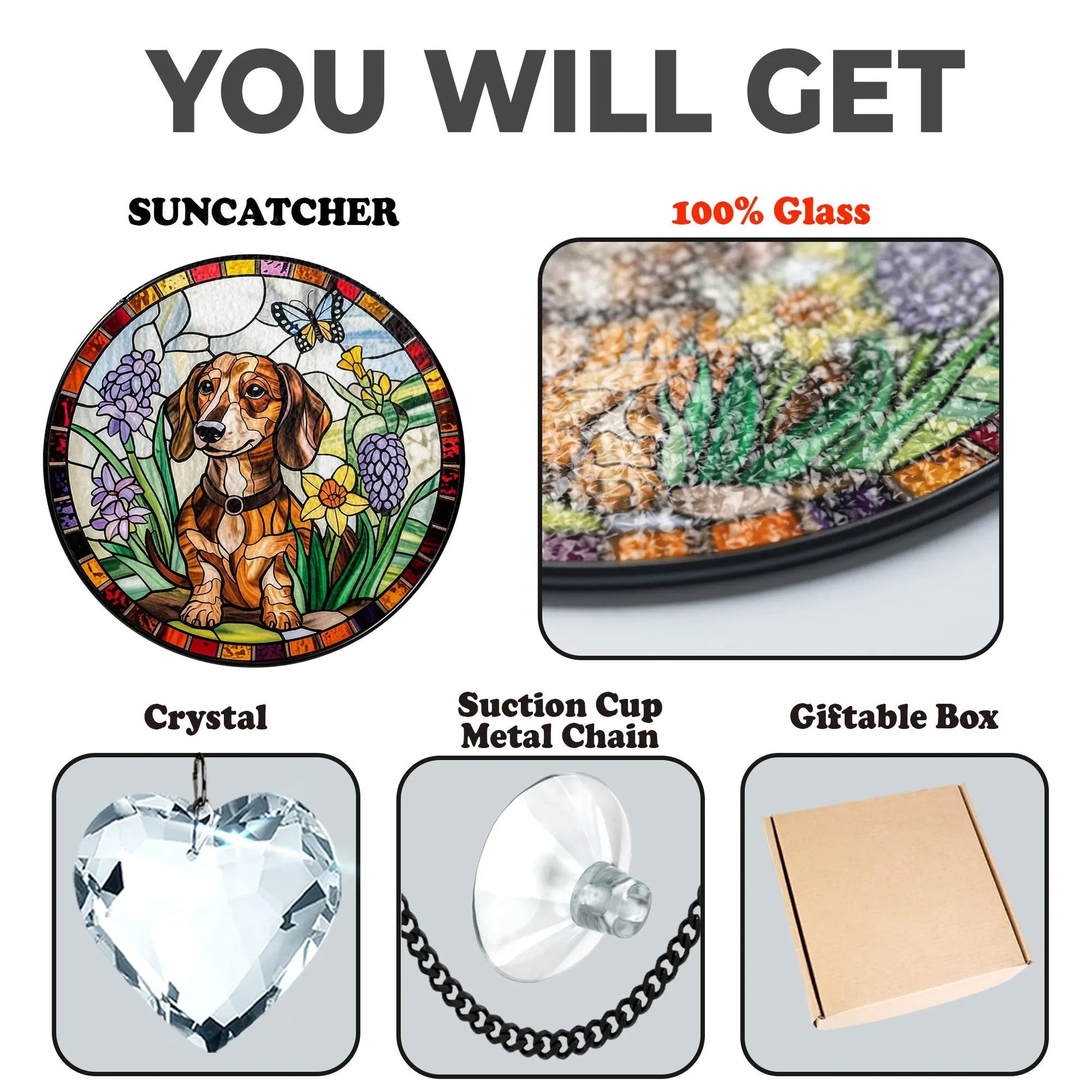 🌟 Dachshund Dog Stained Glass Suncatcher with Crystal – A Heartfelt Tribute for Dog Lovers