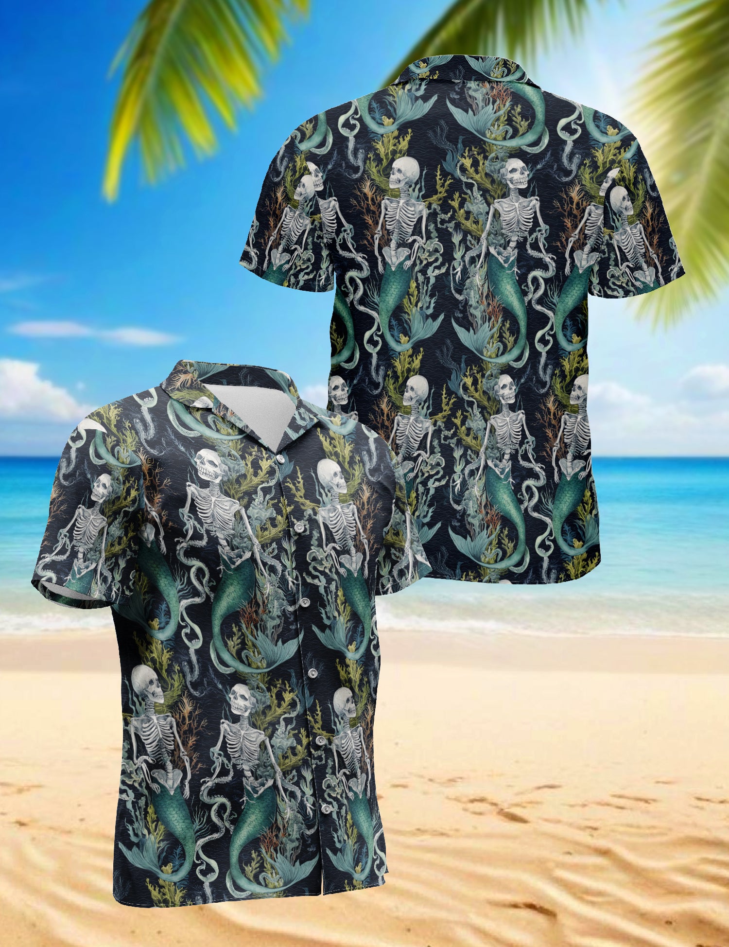 Netecom Devil Mermaids Hawaiian Shirt for Men, Mermaids Lover Gifts, Mythical Creatures Button Down Summer Beach Shirts