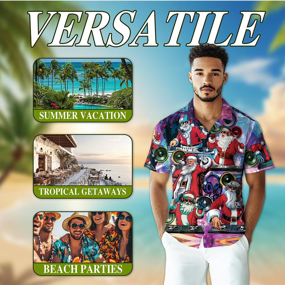 Netecom DJ Santa Claus Christmas Hawaiian Shirt, Music Party Holiday Print Button Down Summer Beach Short Sleeve Shirt, S-5XL