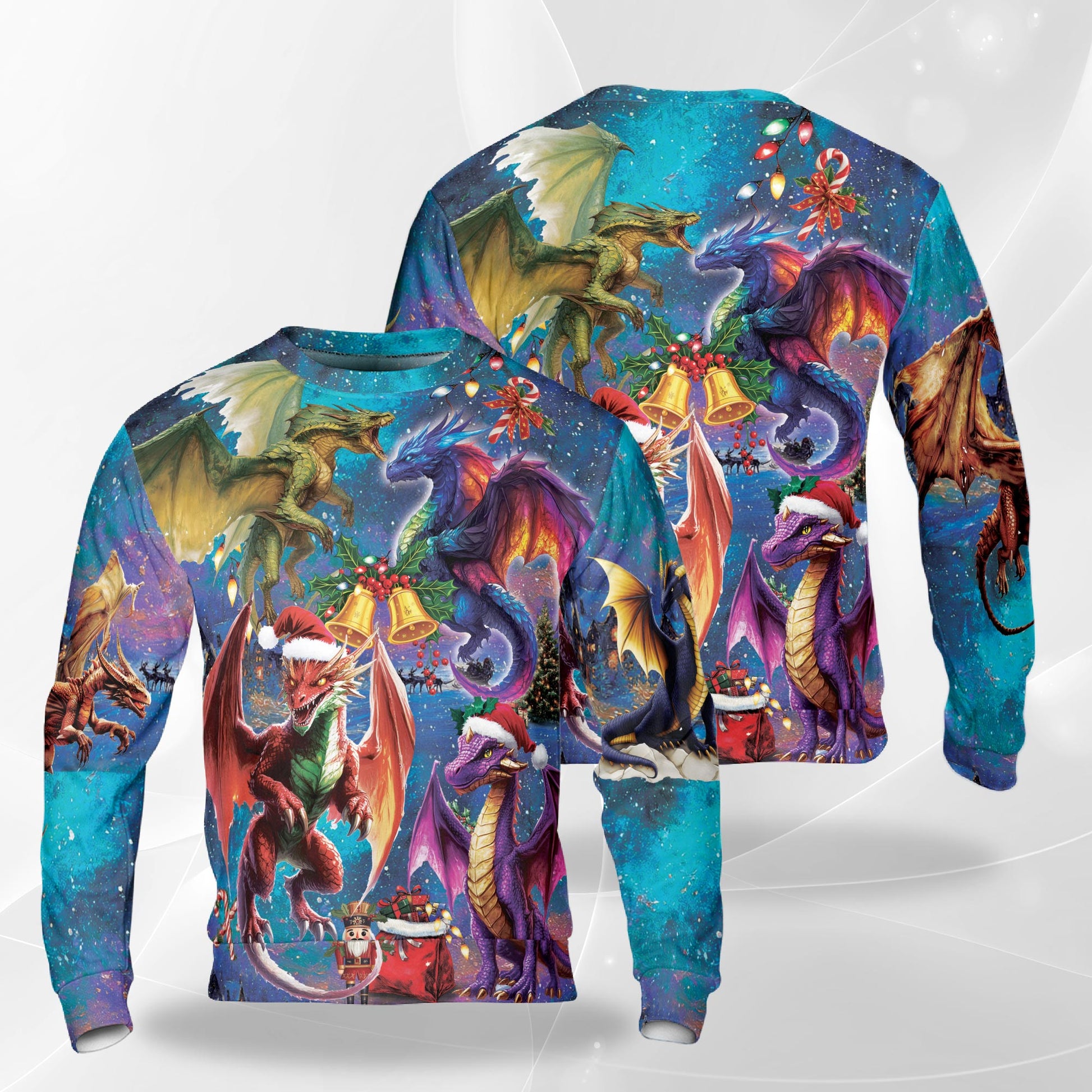 Netecom Dragon Christmas Sweatshirt 3D All Over Print, Mythical Creatures Holiday, Crewneck Pullover for Costume Party