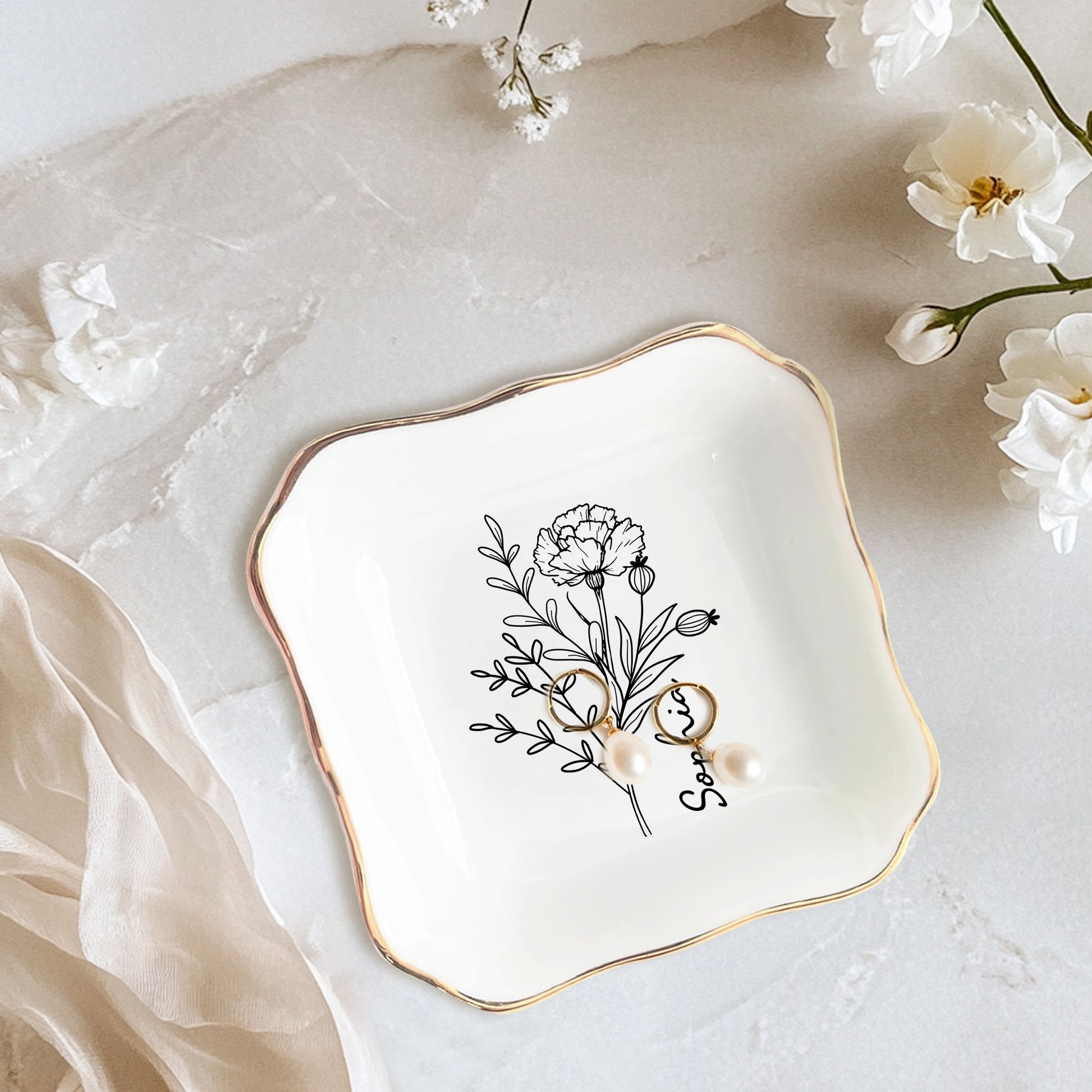 💖 A Personal Bloom: Personalized Birth Month Flower Trinket Dish