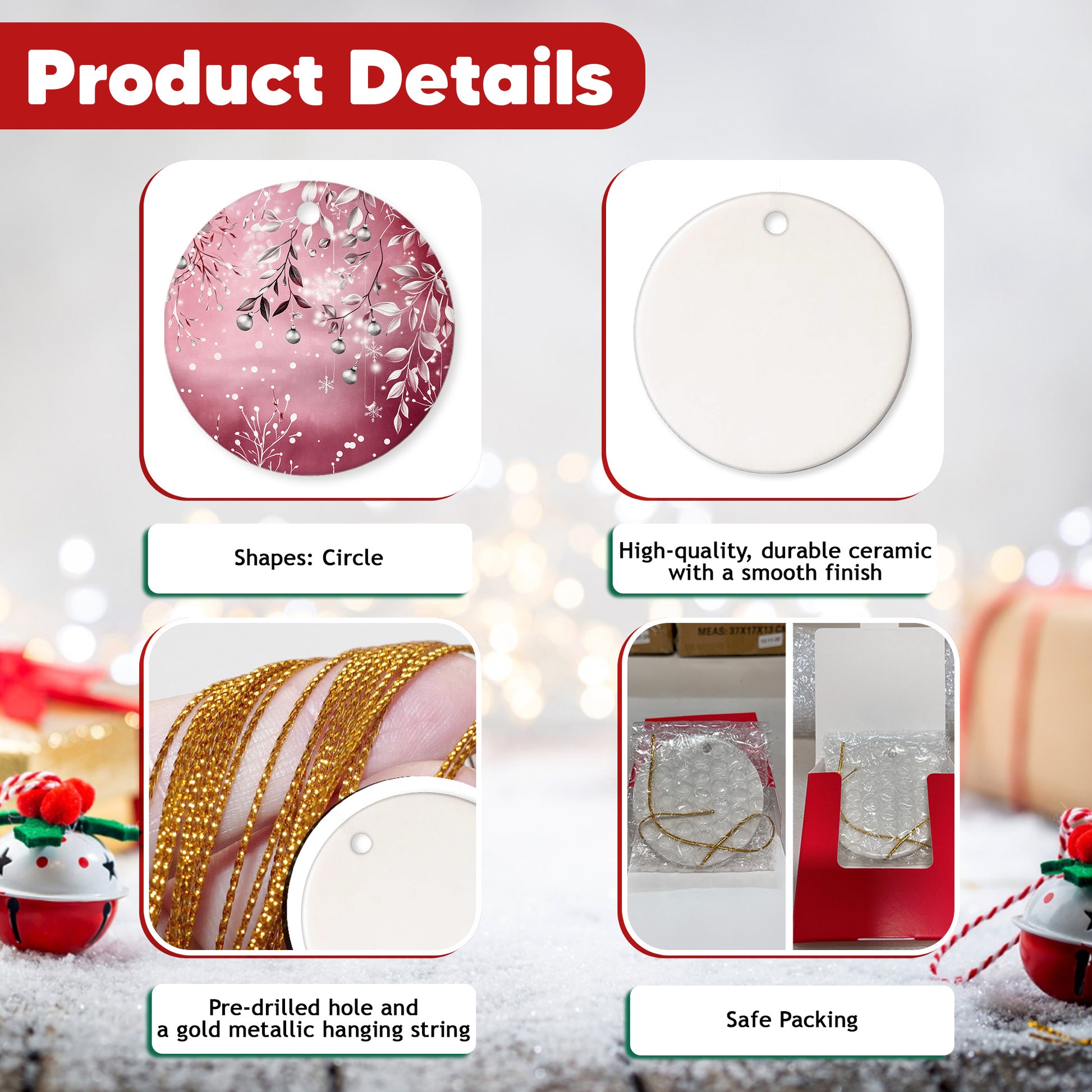 EASY TO USE: Comes with a pre-attached gold cord, making it simple to hang and display. Perfect for your Christmas tree, mantel, windows, car mirror, or any special spot in your home—bringing warmth and festive charm to your holiday celebrations.
