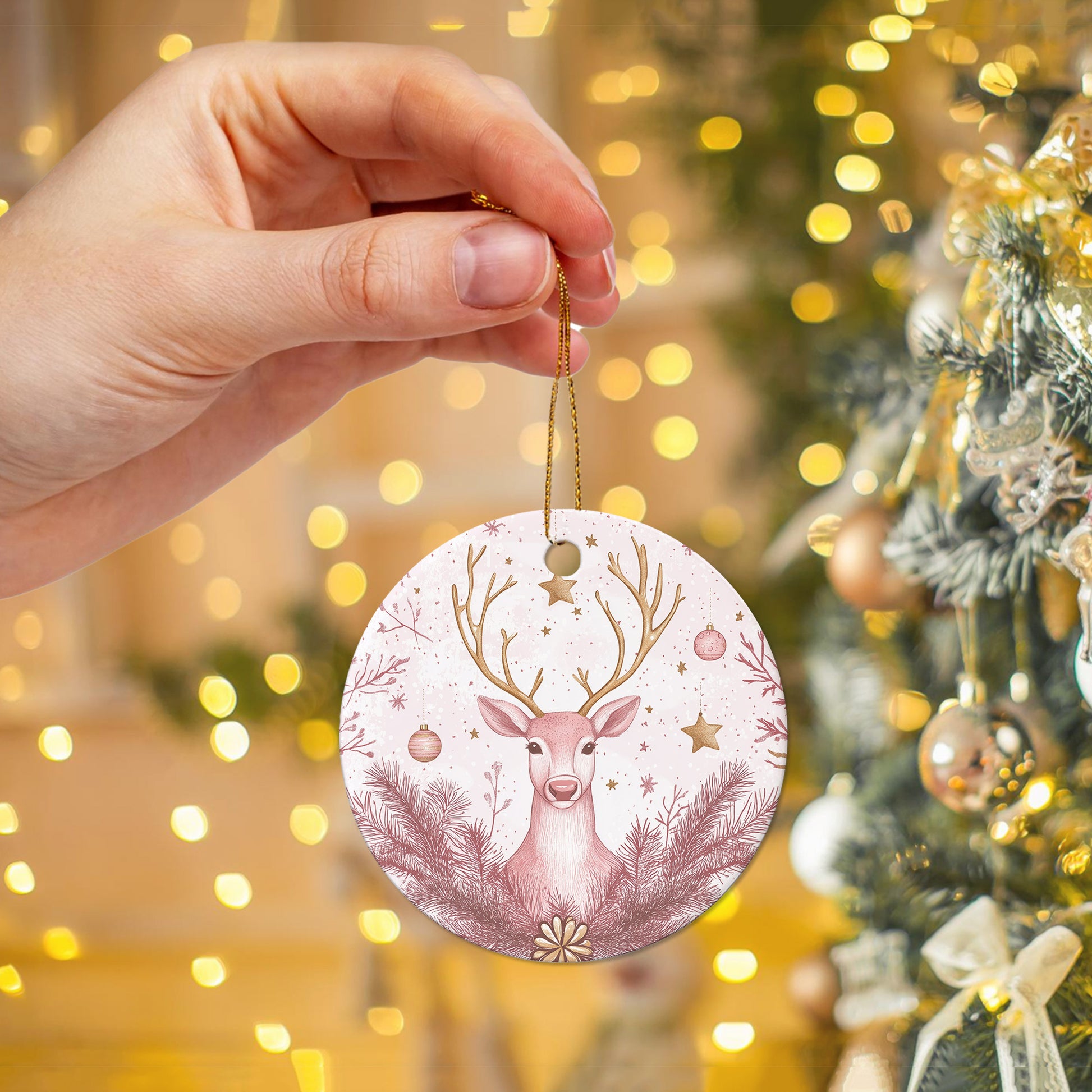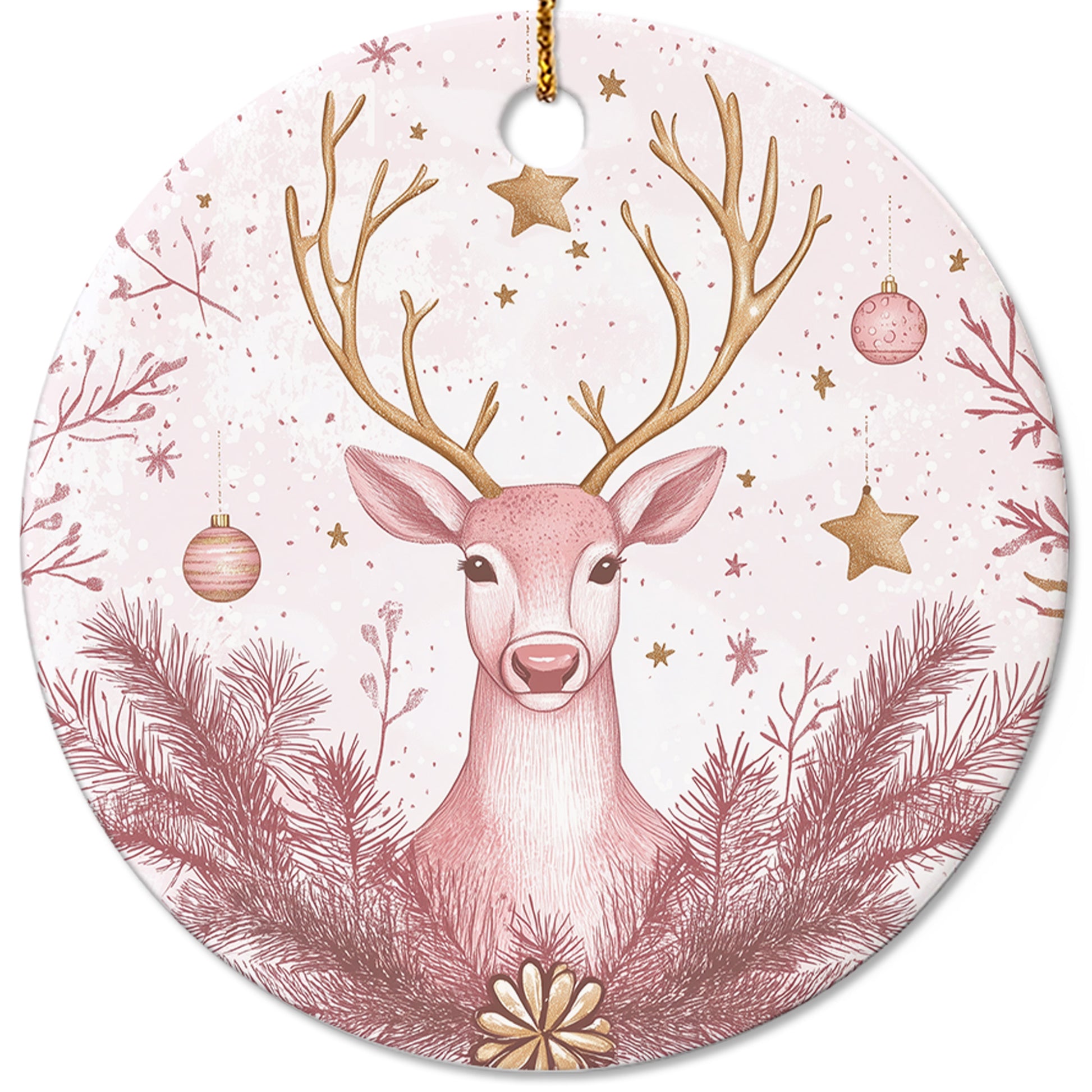 Netecom Elegant Reindeer Pink Ornament, Cernamic Deer Keepsake Ornament for Xmas Tree Decorations, Animals Lover Gift, Gifts for Holiday, Party, Home Decor