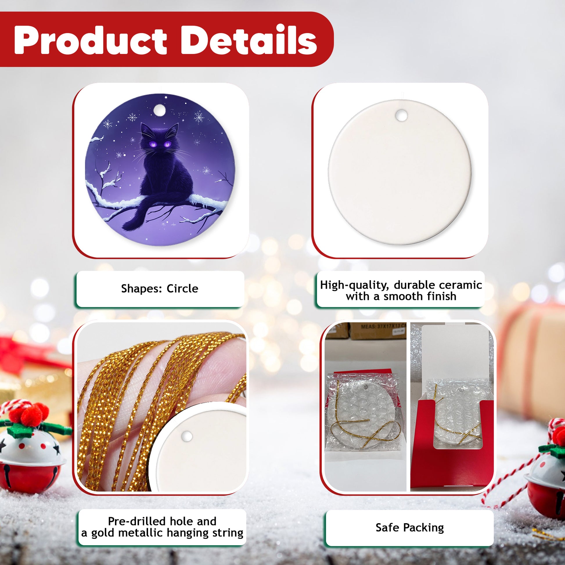 EASY TO USE: Comes with a pre-attached gold cord, making it simple to hang and display. Perfect for your Christmas tree, mantel, windows, car mirror, or any special spot in your home—bringing warmth and festive charm to your holiday celebrations.
