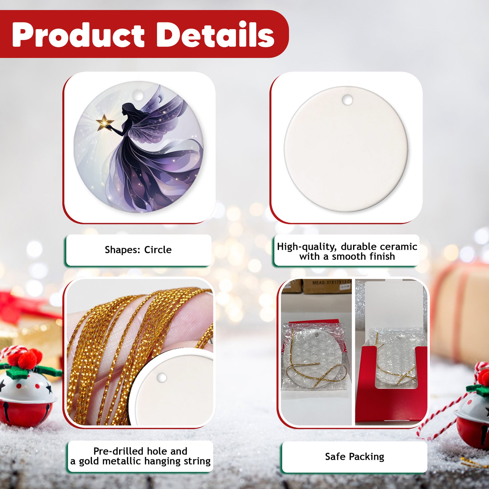 HIGH-QUALITY CERAMIC: Crafted from durable ceramic with a smooth finish, this ornament measures about 3.3 x 3.3 inches—perfect for display or gifting. The advanced printing delivers bright, crisp, high-definition designs that resist fading, offering a more elegant look compared to wooden decorations.