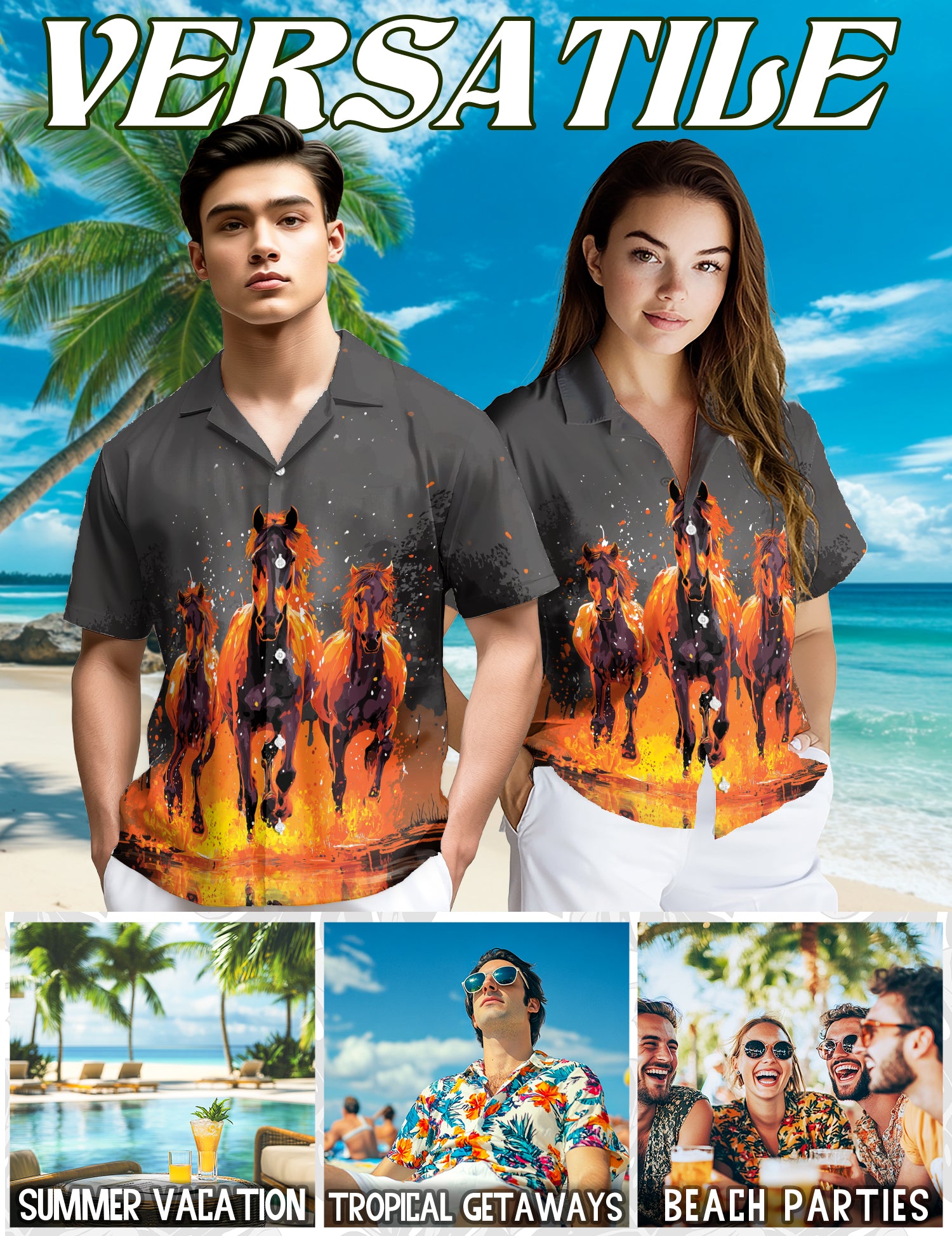Netecom Fire Horse Hawaiian Shirt for Men, Horse Lover Gifts, Flames Animal Button Down Summer Aloha Beach Shirts