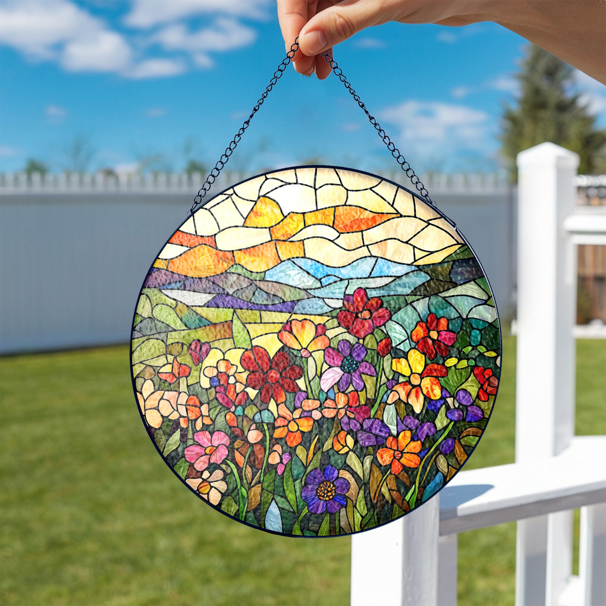 Netecom Flower Garden Stained Glass Sun Catcher – Personalized Floral Ornament, Custom Window Hanging, Nature-Inspired Gift