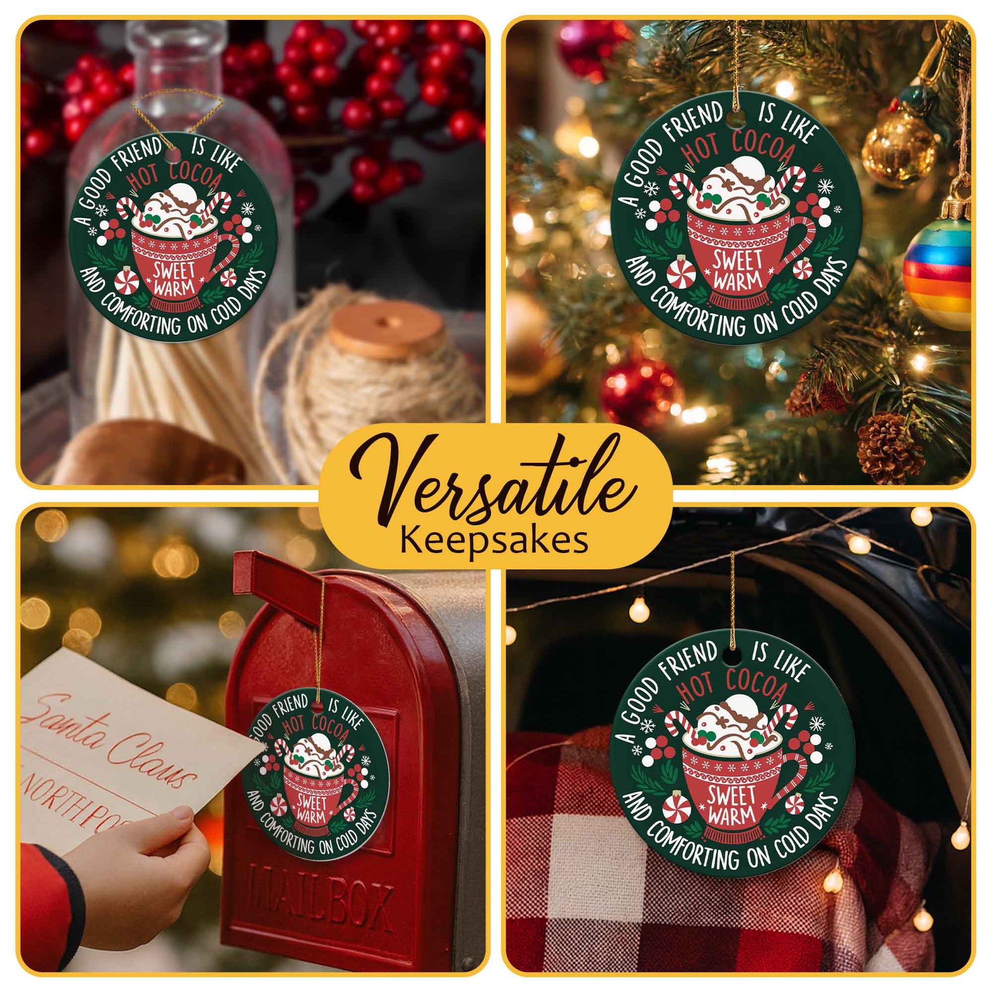 Netecom Funny Best Friend Christmas Ornament, A Good Friend is Like Hot Cocoa Ceramic Ornament for Xmas Tree Hanging Decorations Gift, Friendship Gifts for Men Women, Holiday Party Present