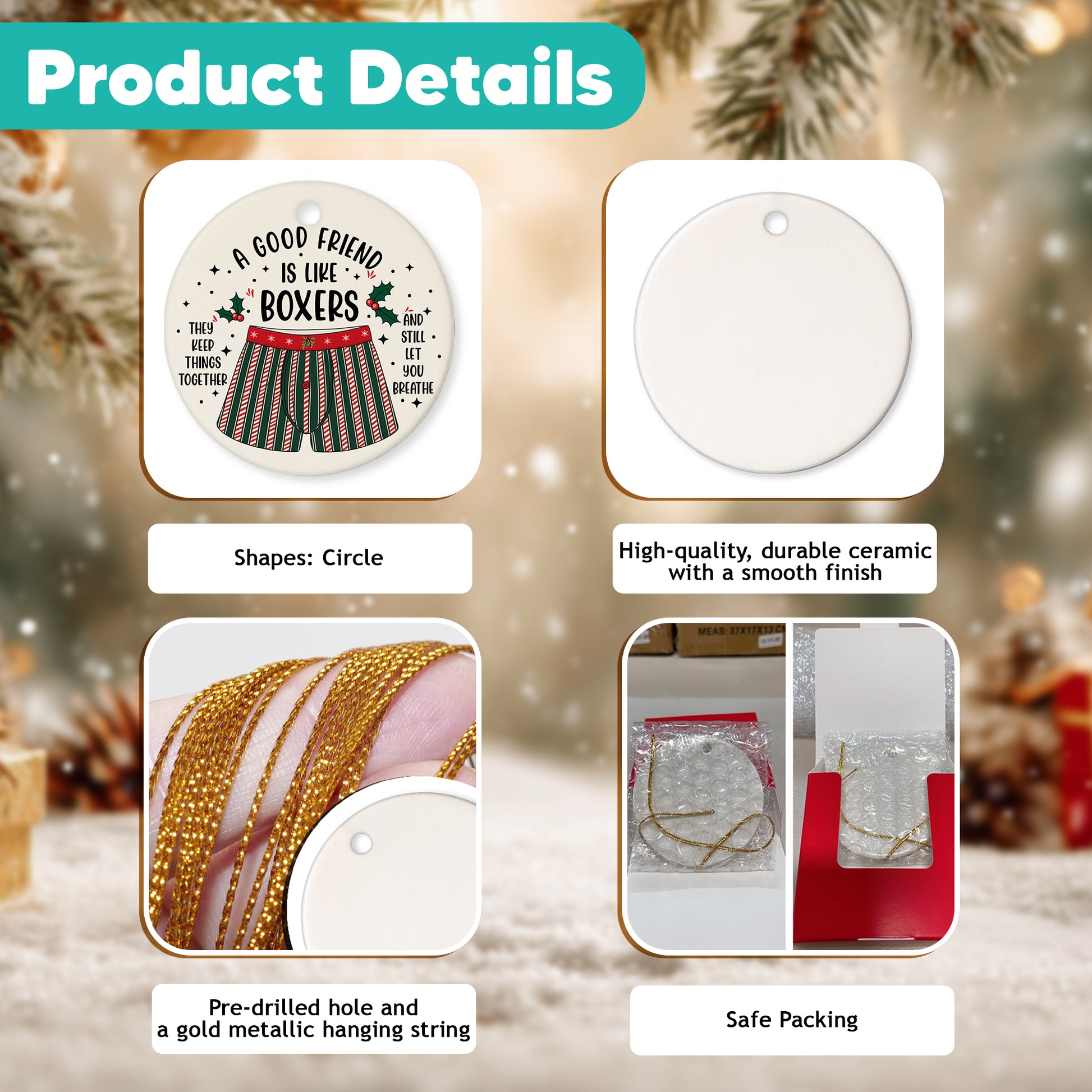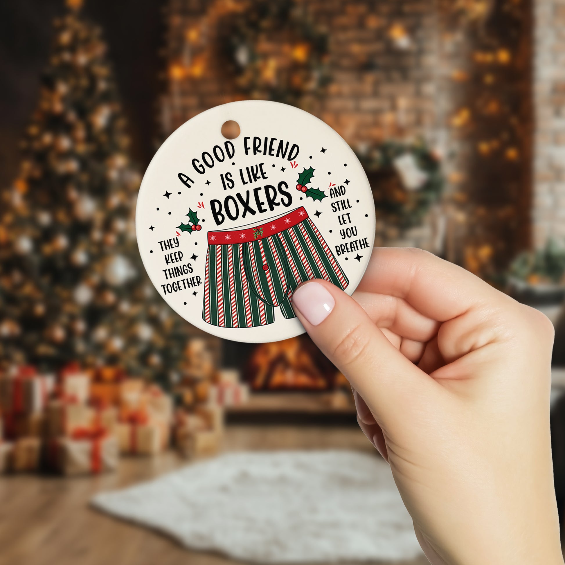 Netecom Funny Best Friend Ornament for Men, A Good Friend is Like Boxers Ceramic Ornament for Christmas Tree Hanging Decorations Gift, Friendship Gifts, Holiday Party Present
