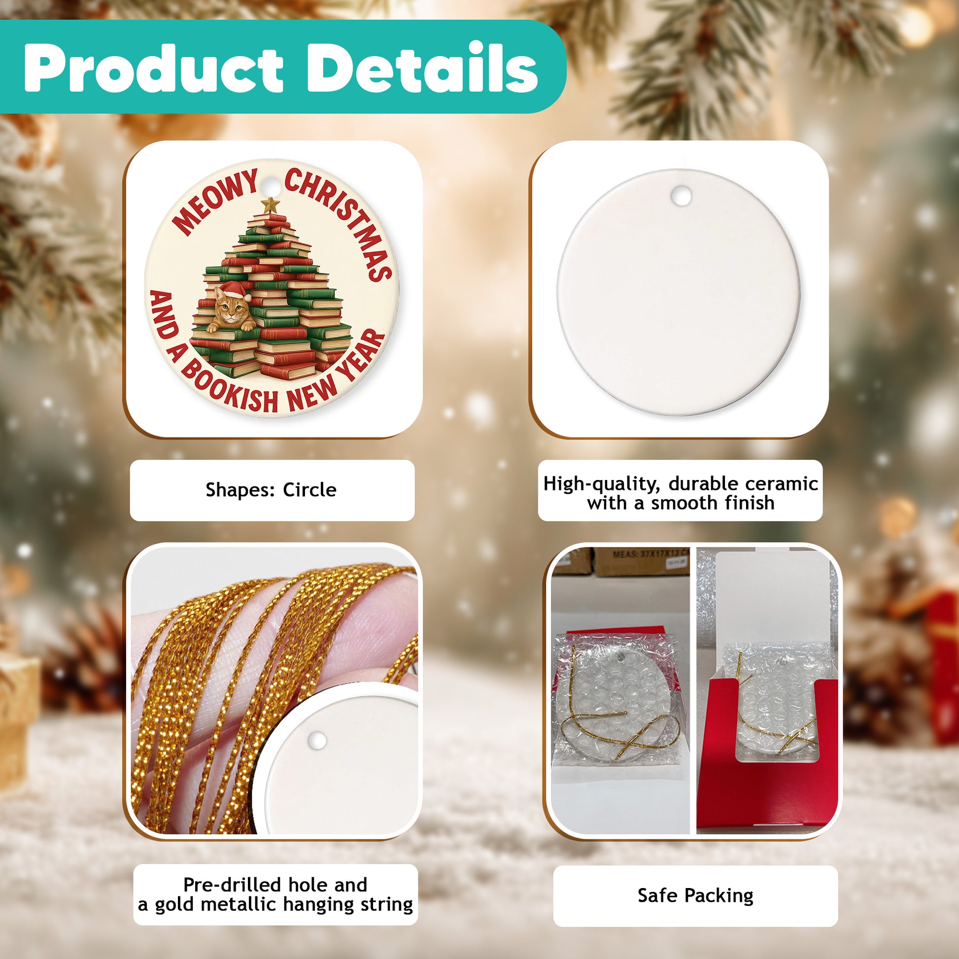 EASY TO USE: Comes with a pre-attached gold cord, making it simple to hang and display. Perfect for your Christmas tree, mantel, windows, car mirror, or any special spot in your home—bringing warmth and festive charm to your holiday celebrations.