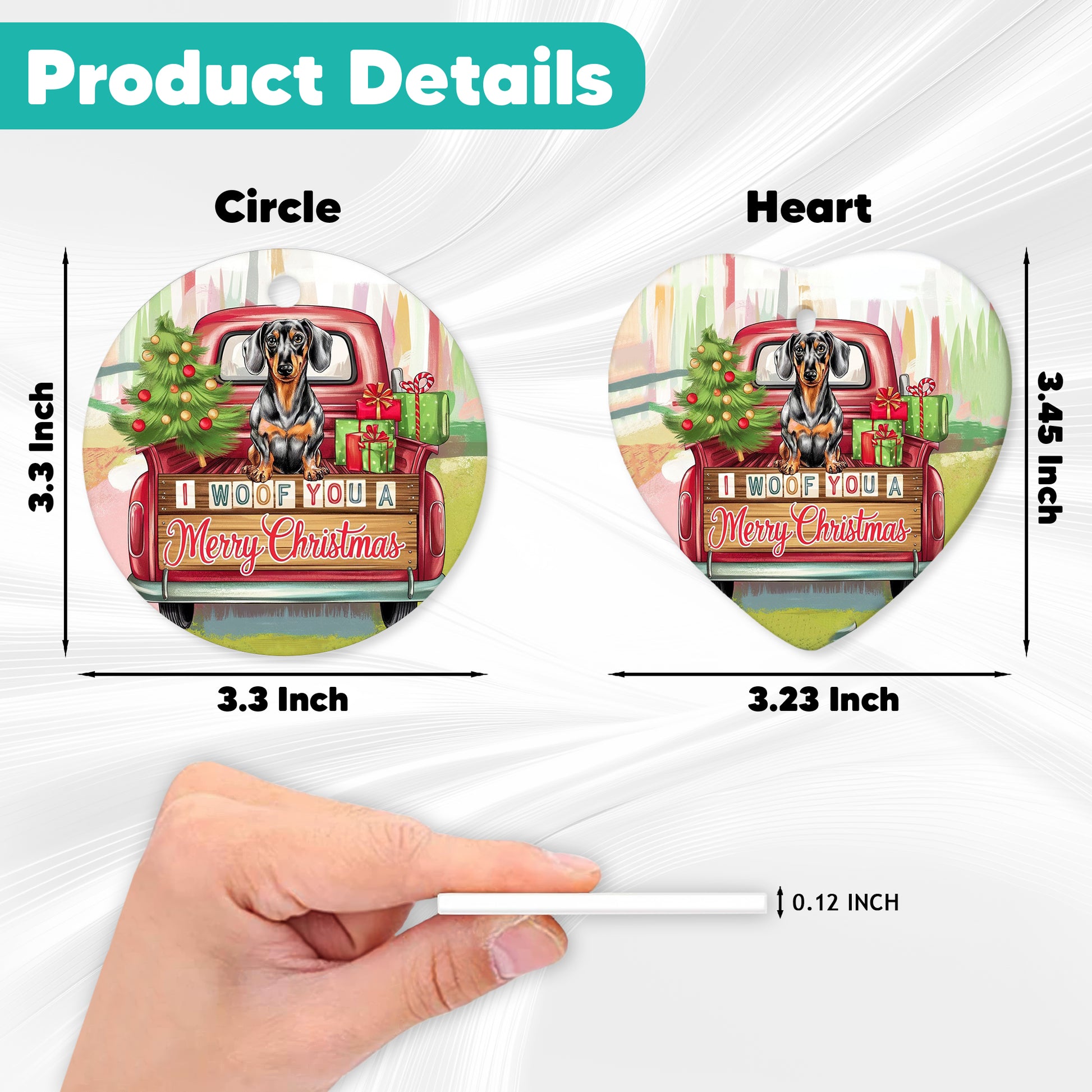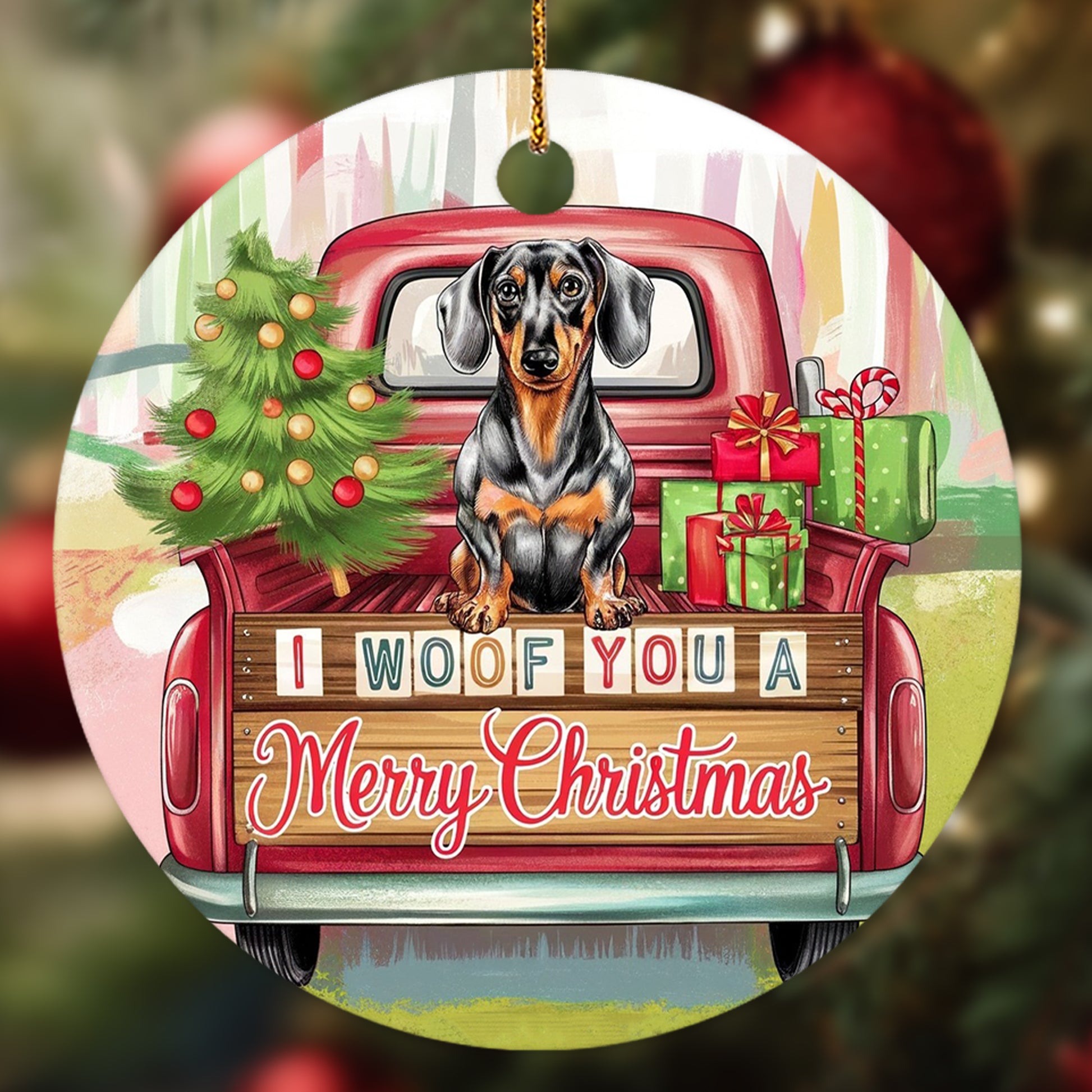 Netecom Funny Dachshund in Holiday Truck Ornament, I Woof You a Merry Christmas Ceramic Ornament for Christmas Tree Hanging Decorations Gift, Pet Lover Gifts, Holiday Party Present