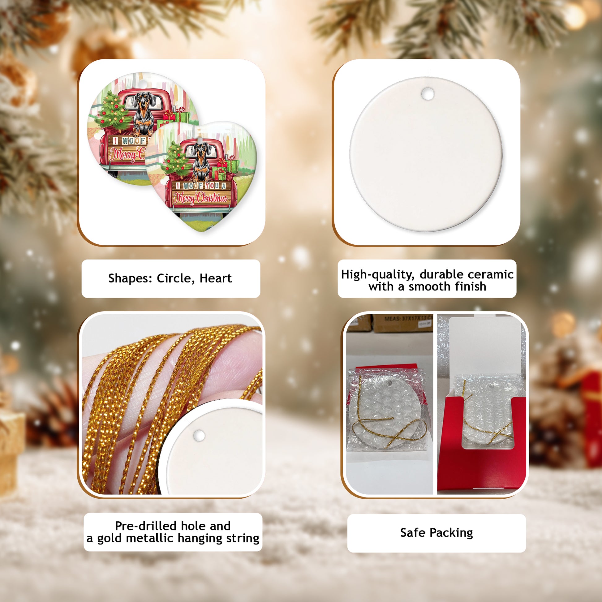 HIGH-QUALITY CERAMIC: Crafted from durable ceramic with a smooth finish, this ornament measures about 3.3 x 3.3 inches—perfect for display or gifting. The advanced printing delivers bright, crisp, high-definition designs that resist fading, offering a more elegant look compared to wooden decorations.