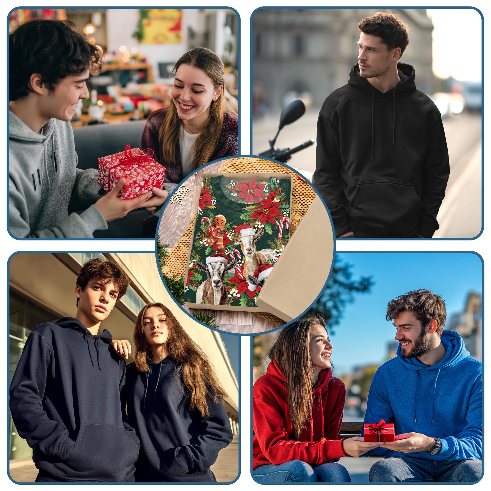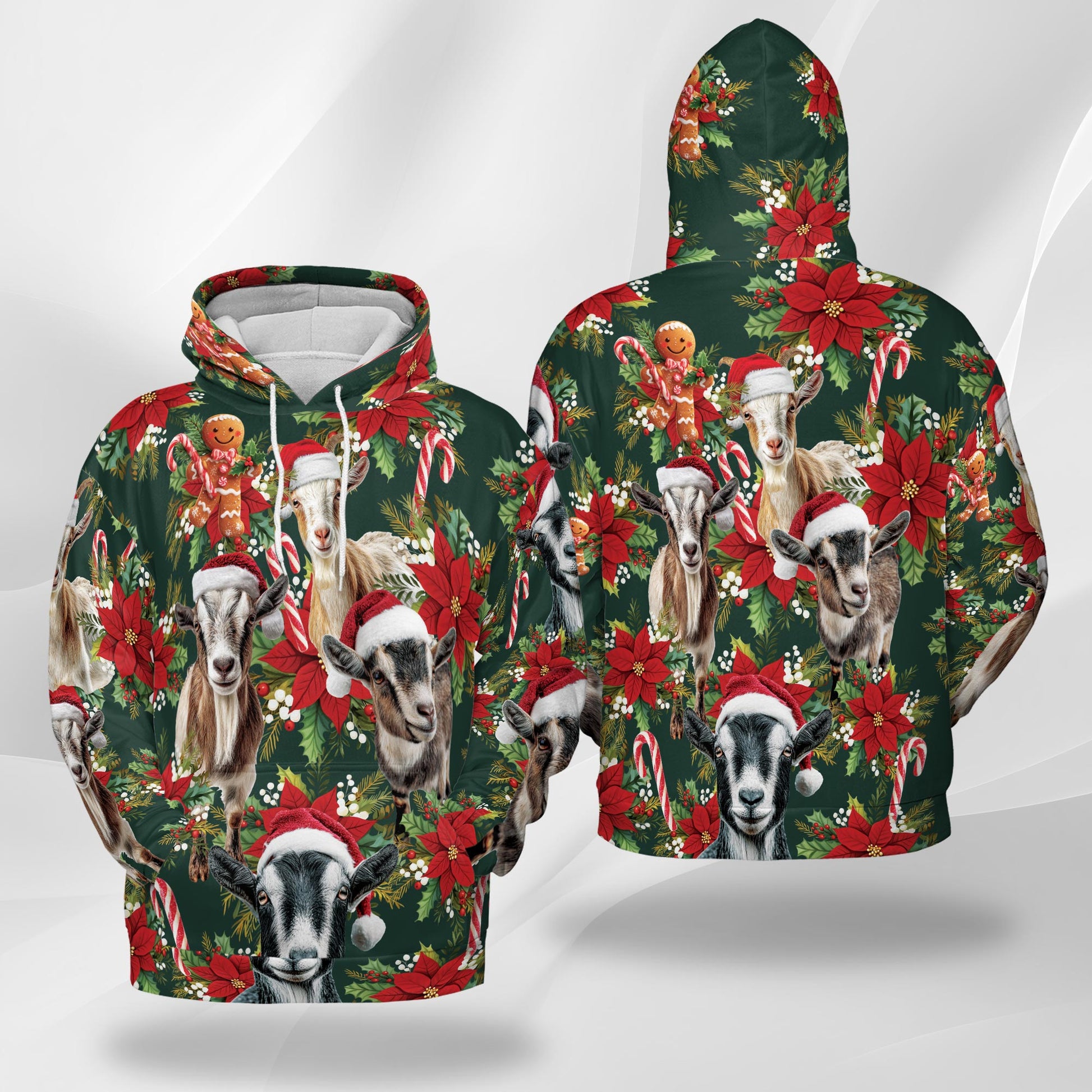 Netecom Funny Goat Christmas Print Hoodie with Front Pocket, All Over Farm Animal Holiday Graphic Sweatshirt Unisex Casual