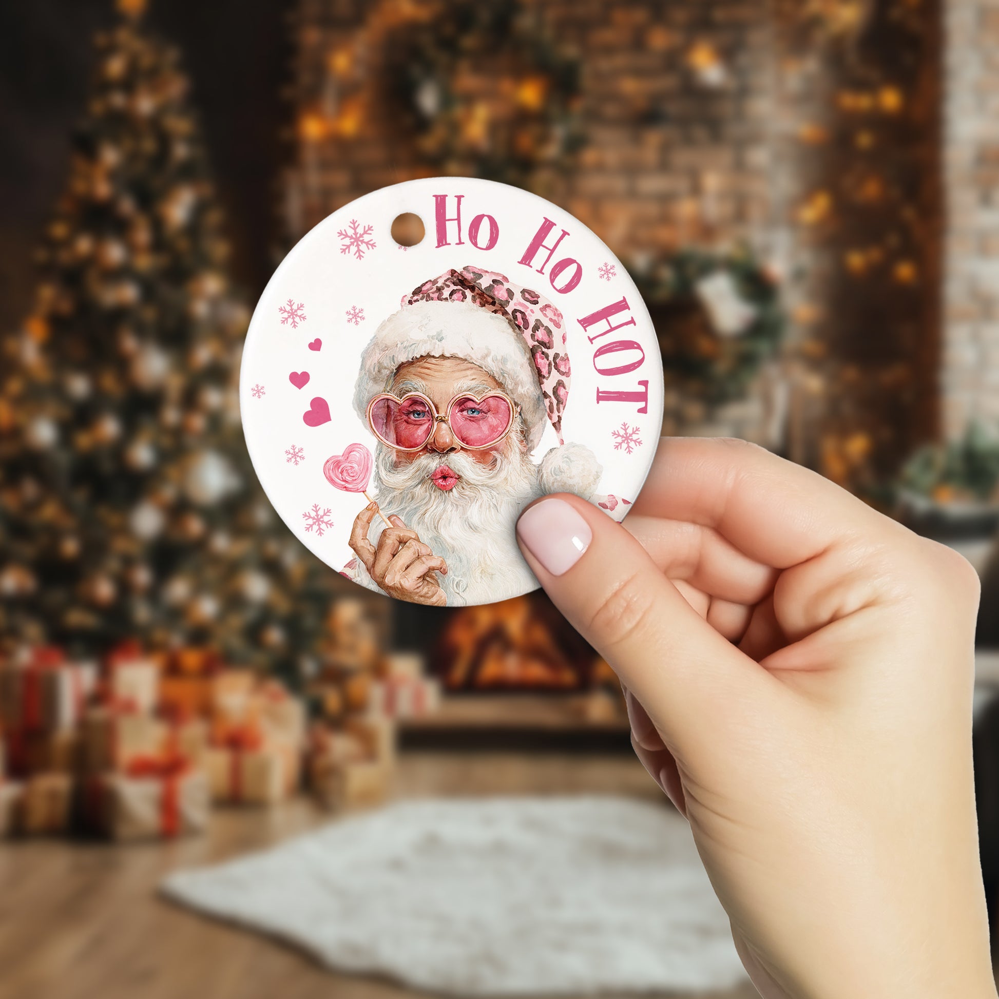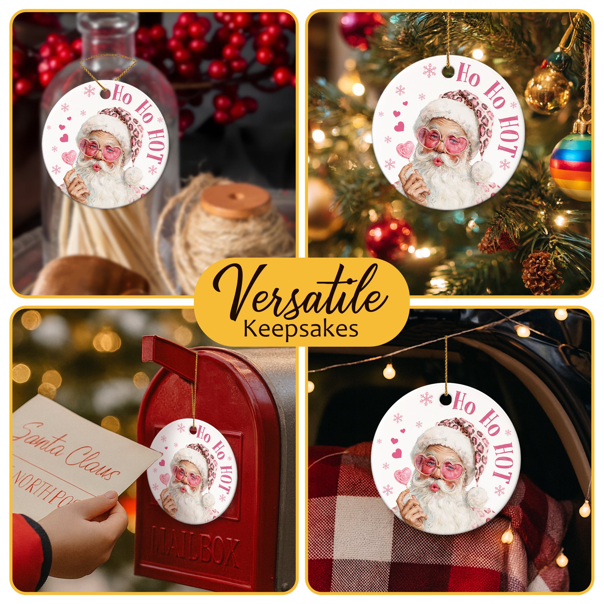 Netecom Funny Ho Ho Hot Santa Christmas Ornament, Santa Claus with Pink Heart Glasses and Candy Ceramic Ornament for Xmas Tree Hanging Decorations Gift, Home Decor, Holiday Party Present