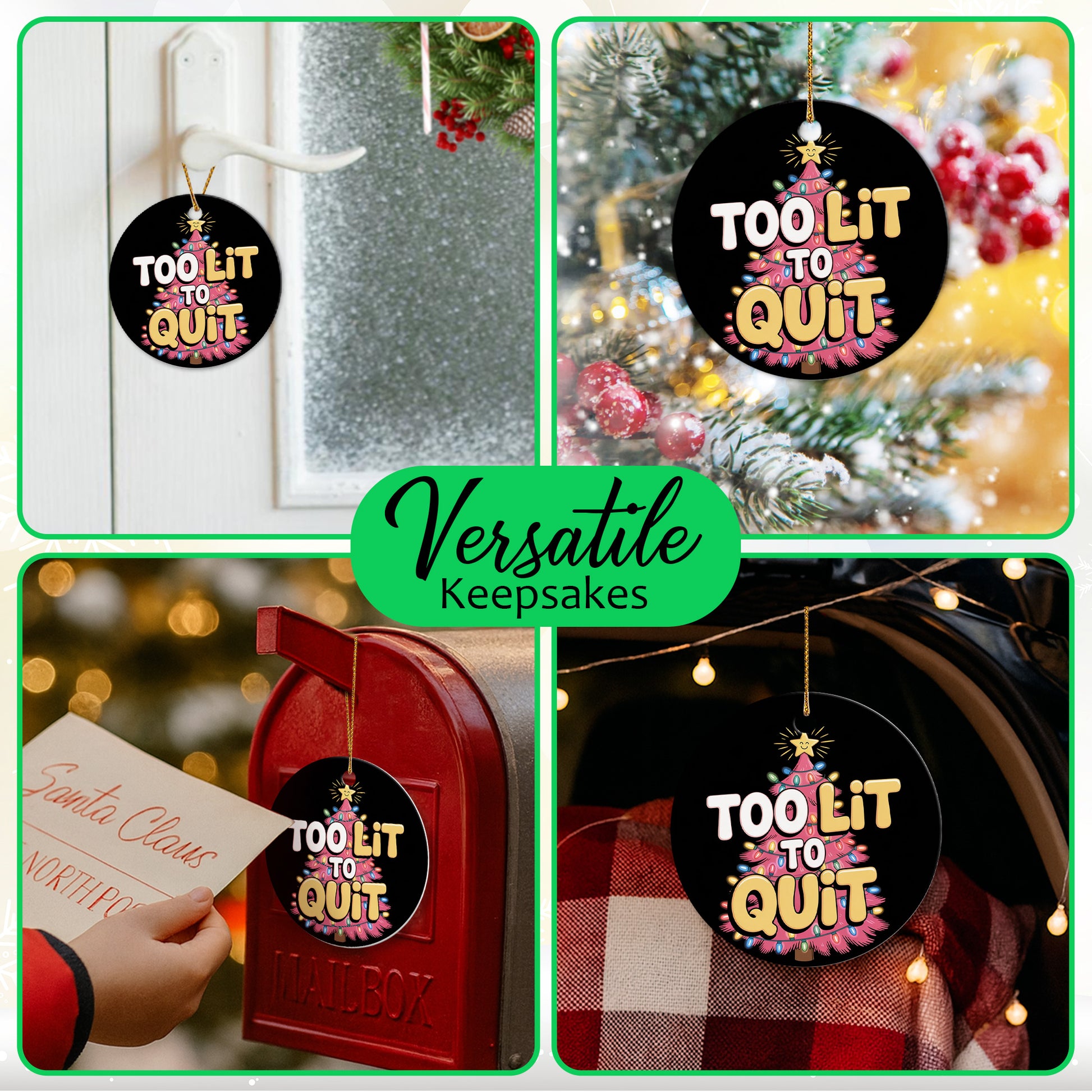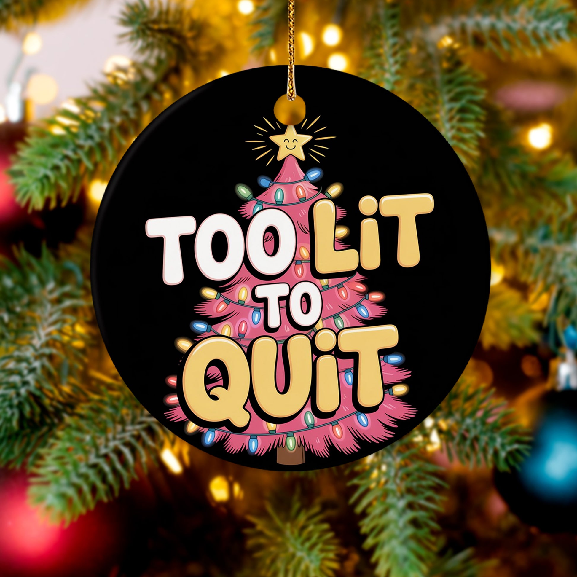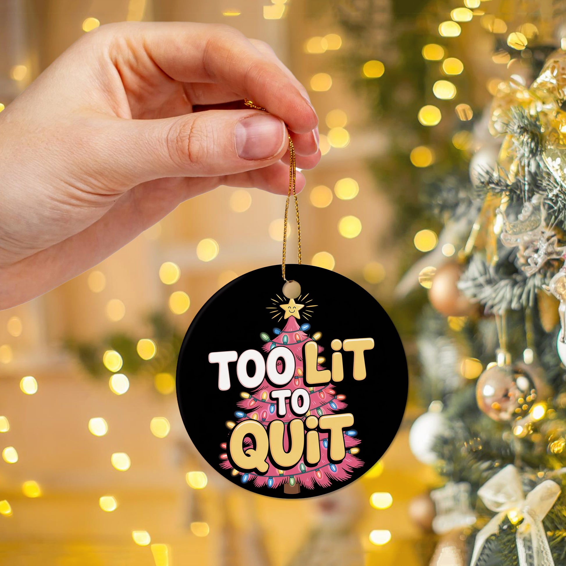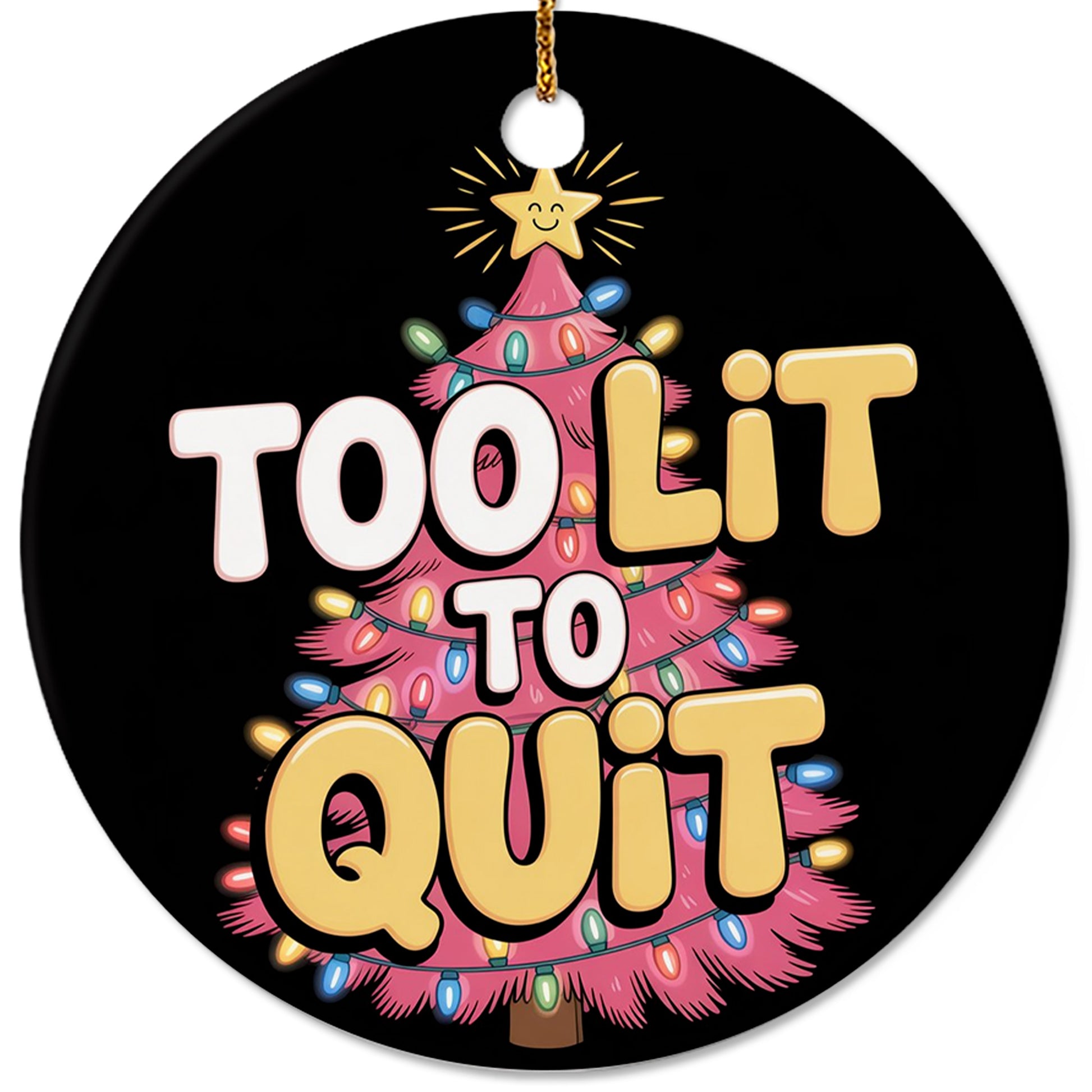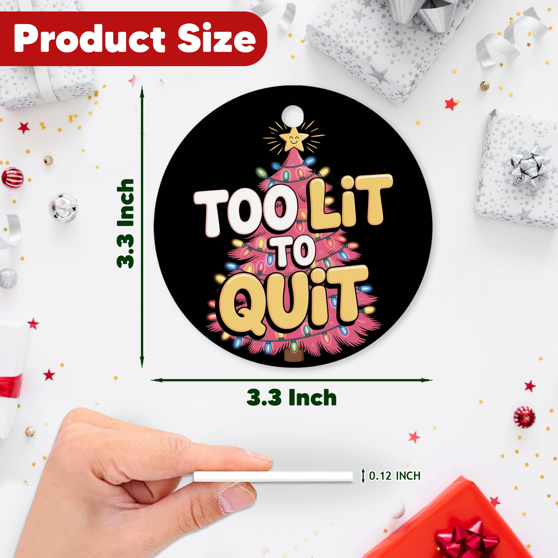 Netecom Funny Pink Christmas Tree with Lights Ornament, Too Lit To Quit Ceramic Ornament for Xmas Tree Hanging Decorations Gift, Home Decor, Gifts for Friends & Family, Holiday Party Present