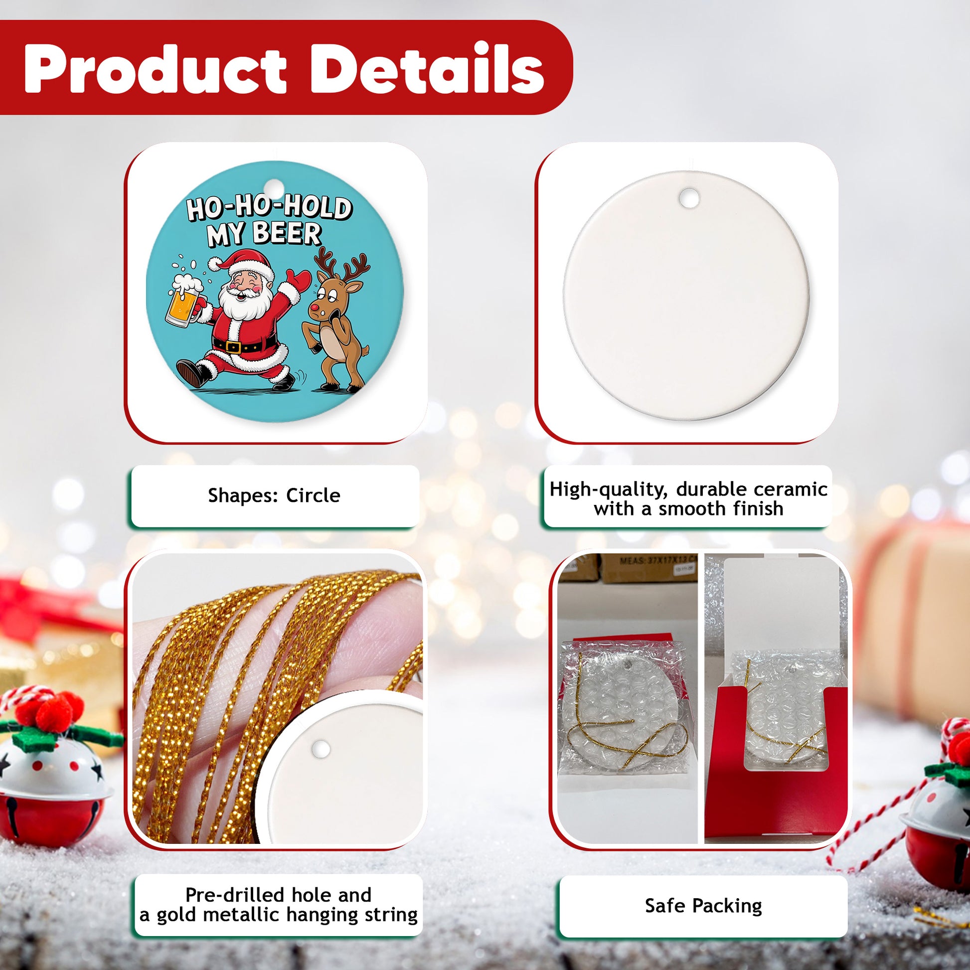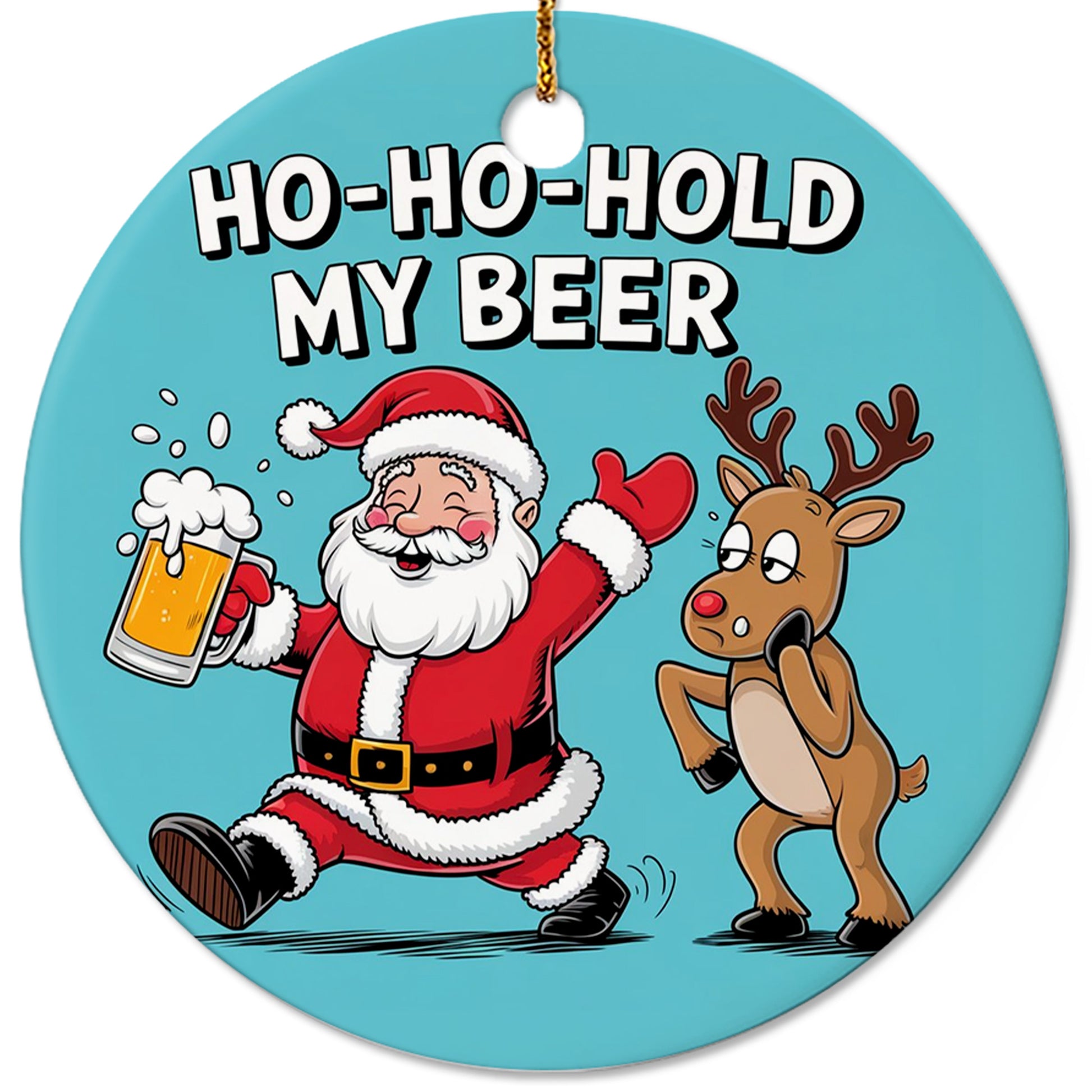 Netecom Funny Santa Claus Reindeer Christmas Ornament, Ho Ho Hold My Beer Ceramic Ornament for Xmas Tree Hanging Decorations Gift, Home Decor, Gifts for Friends & Family, Holiday Party Present