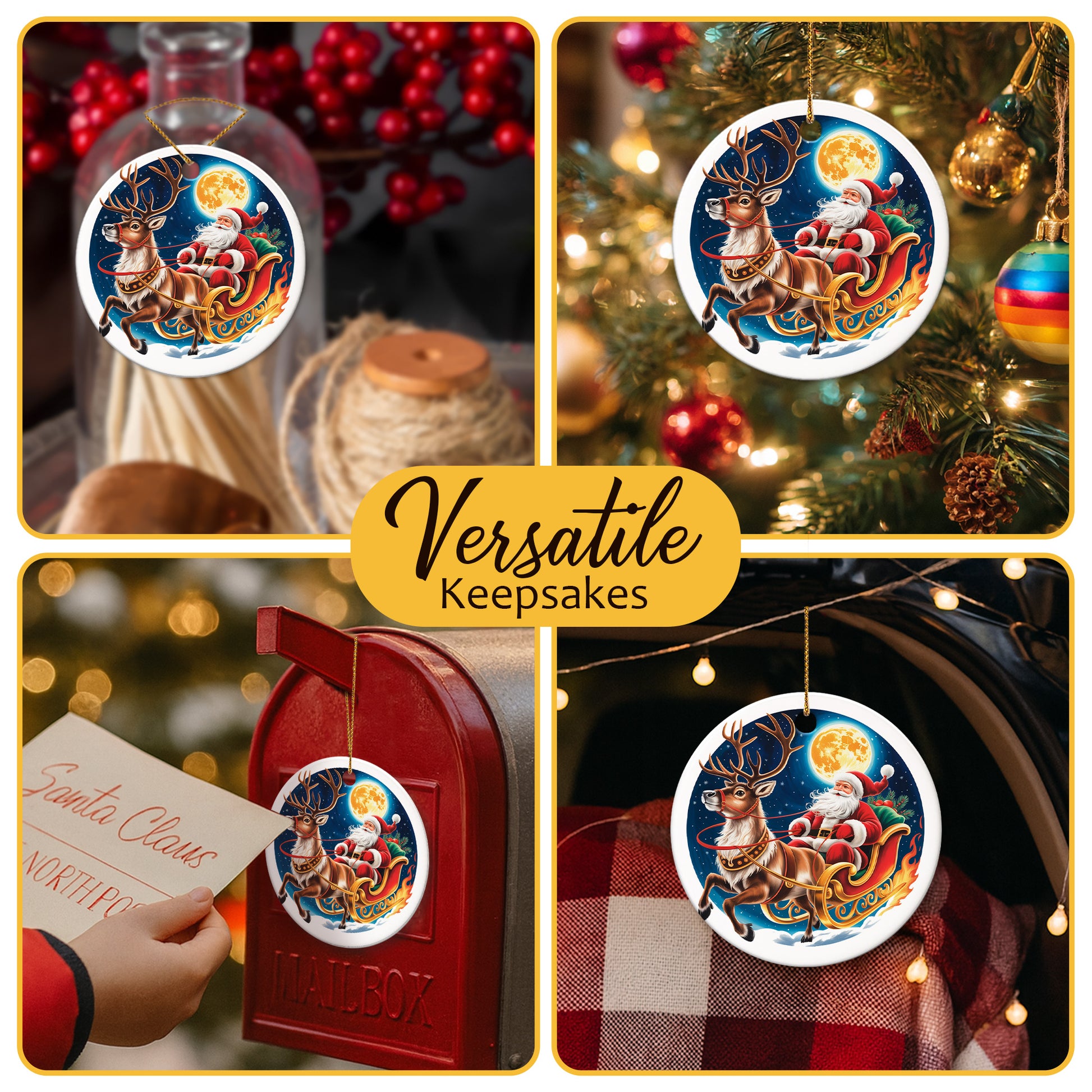 Netecom Funny Santa Claus Sleigh Ornament, Santa Claus and Reindeer Ceramic Ornament for Xmas Tree Hanging Decorations Gift, Gifts for Friends & Family, Holiday Party Present