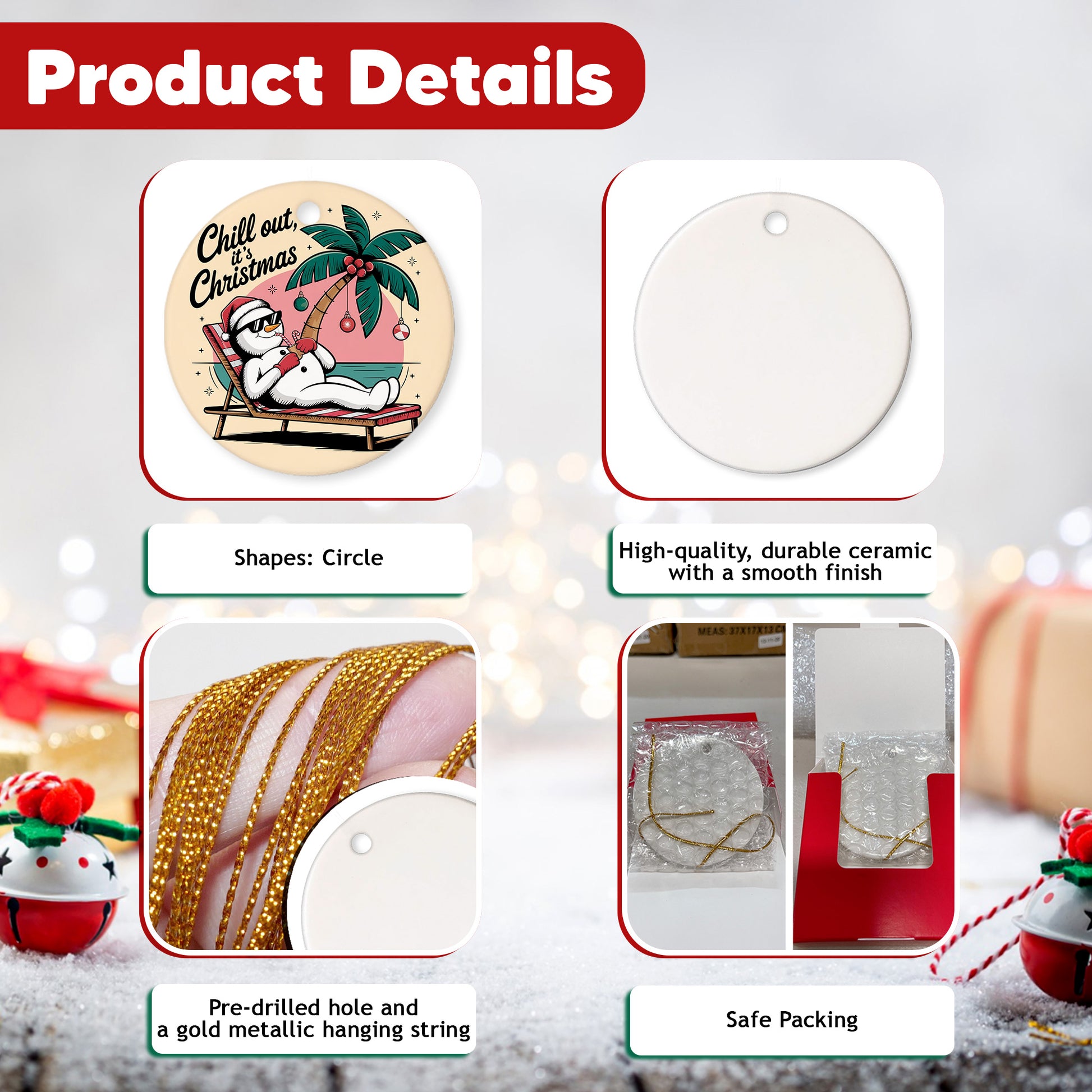 HIGH-QUALITY CERAMIC: Crafted from durable ceramic with a smooth finish, this ornament measures about 3.3 x 3.3 inches—perfect for display or gifting. The advanced printing delivers bright, crisp, high-definition designs that resist fading, offering a more elegant look compared to wooden decorations.