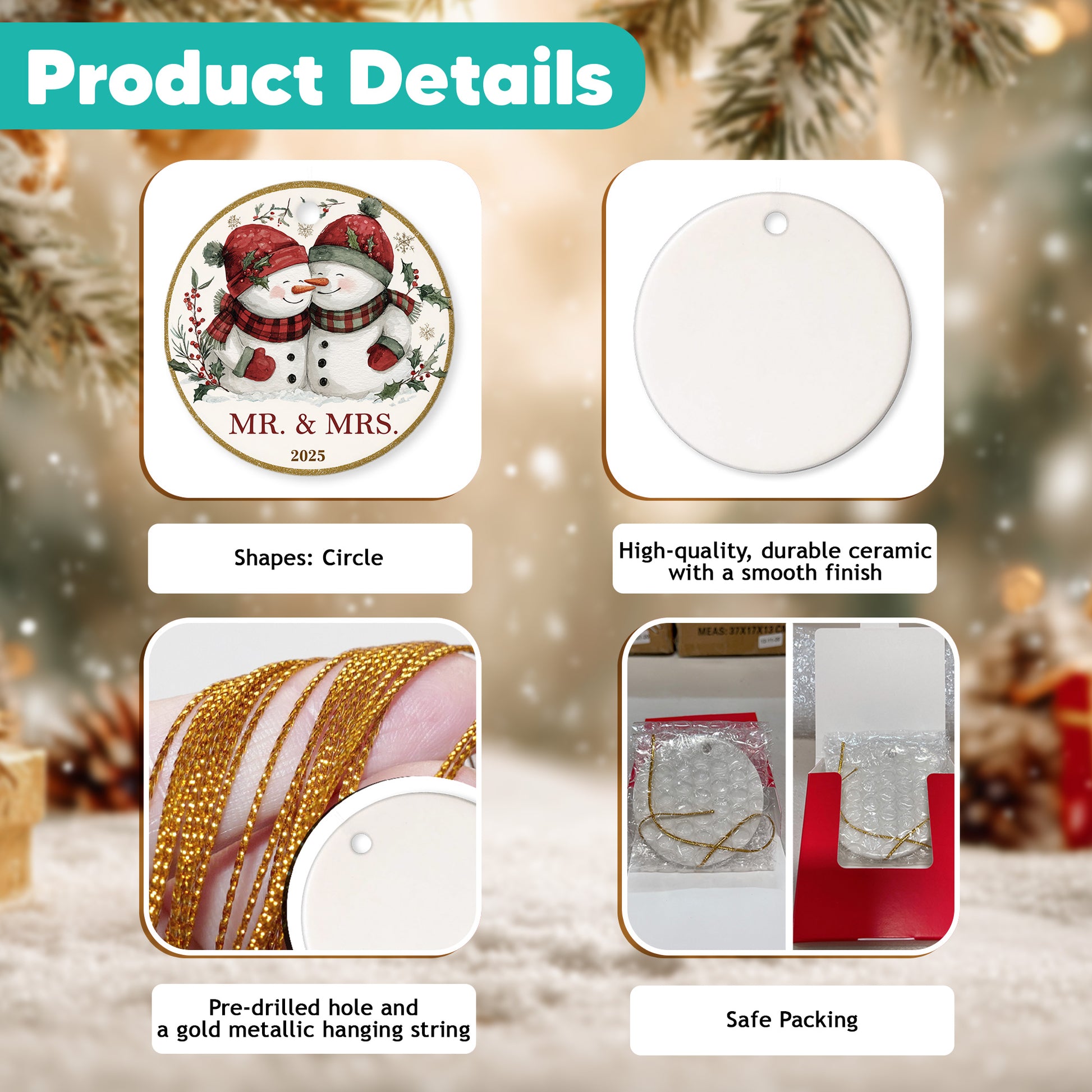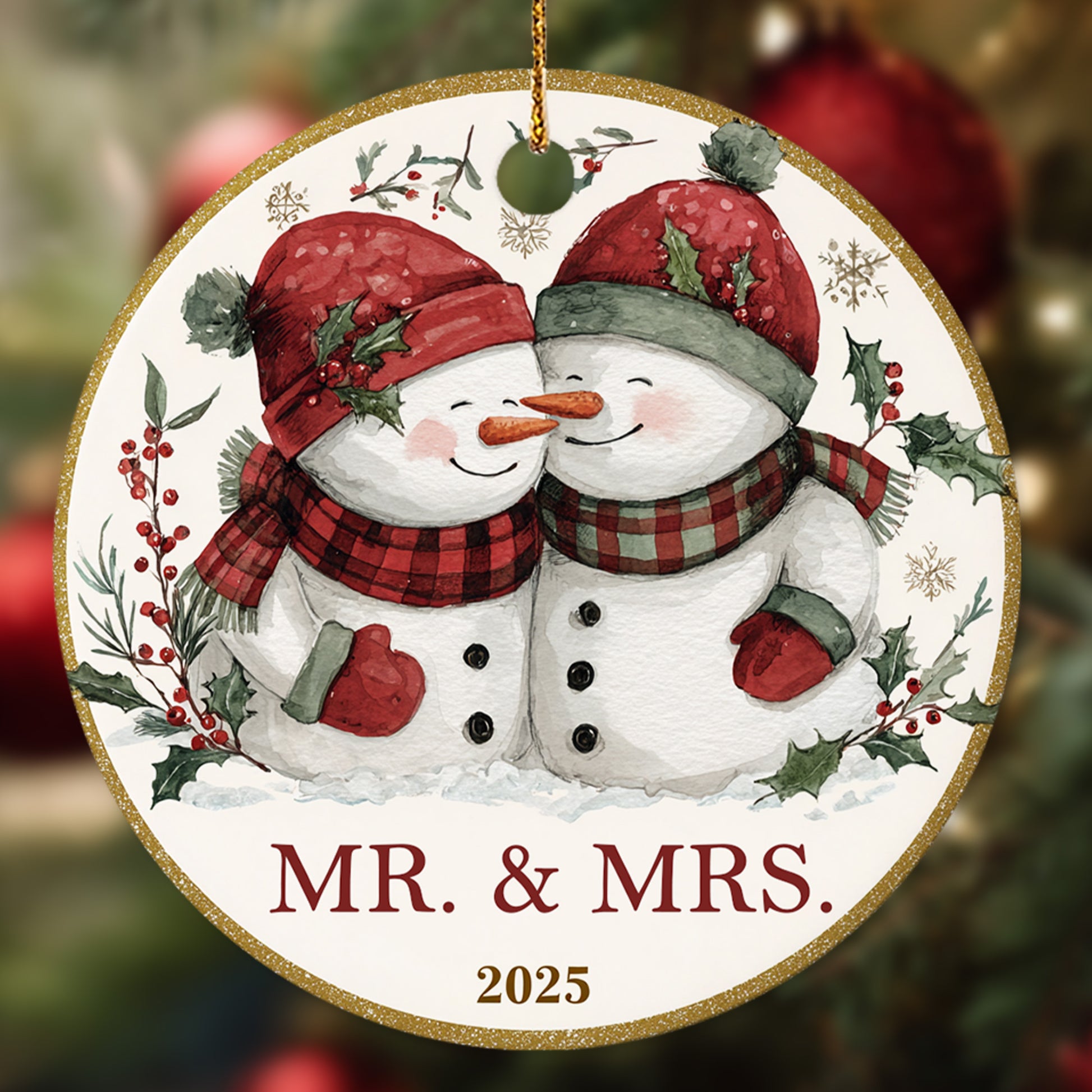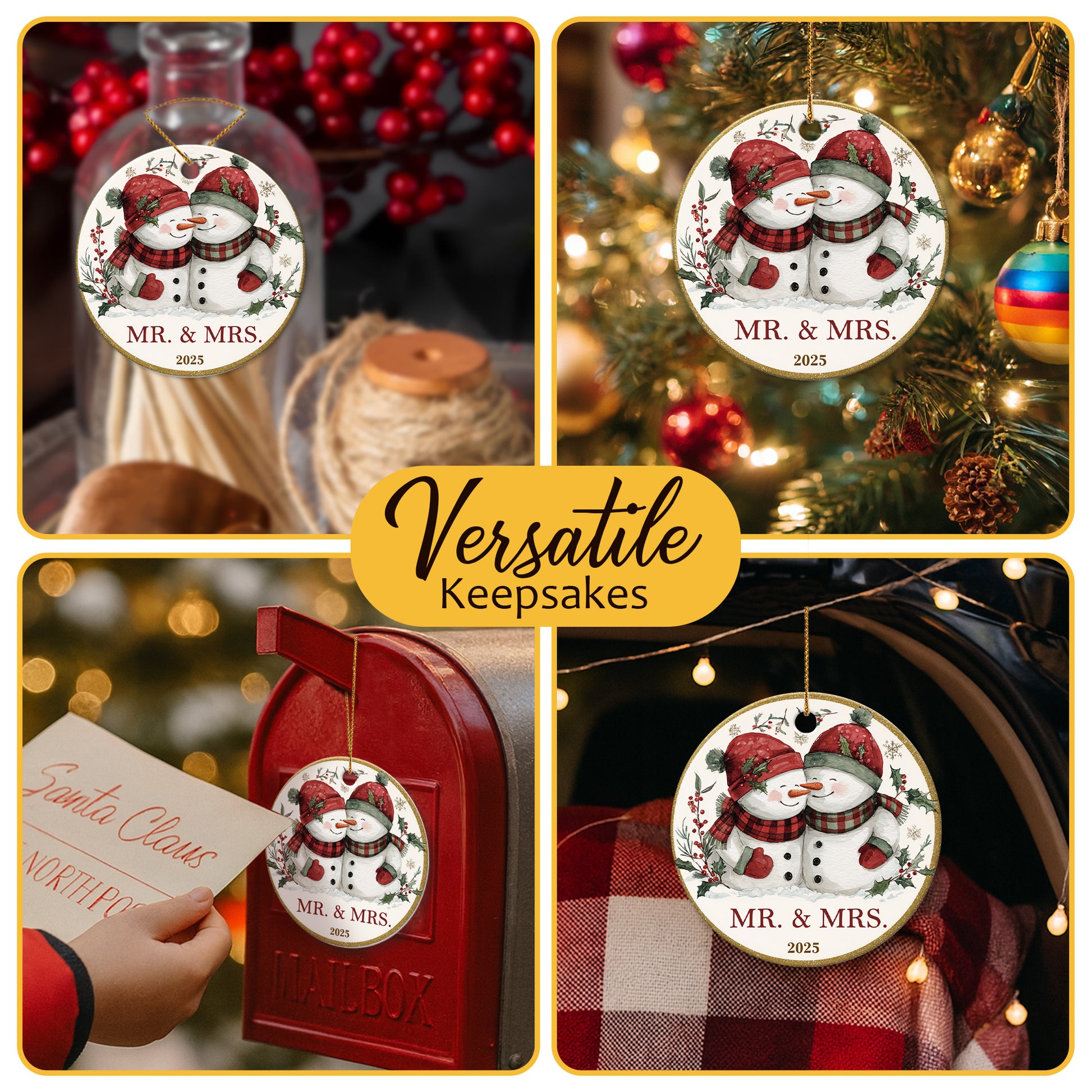 Netecom Funny Snowman Couple Ornament 2025, Mr and Mrs Christmas Ceramic Ornament for Xmas Tree Hanging Decorations Gift, Anniversary Wedding Gifts, Snowman Lover Gifts, Holiday Party Present