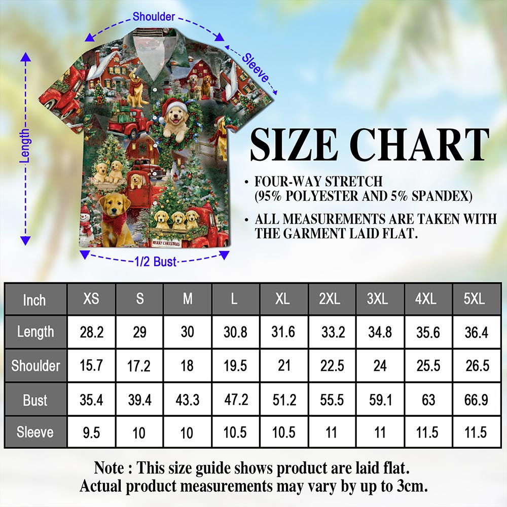 Netecom Golden Retriever Christmas Hawaiian Shirt for Men, Festive Dog Holiday Print Button Down Summer Beach Shirt, S-5XL