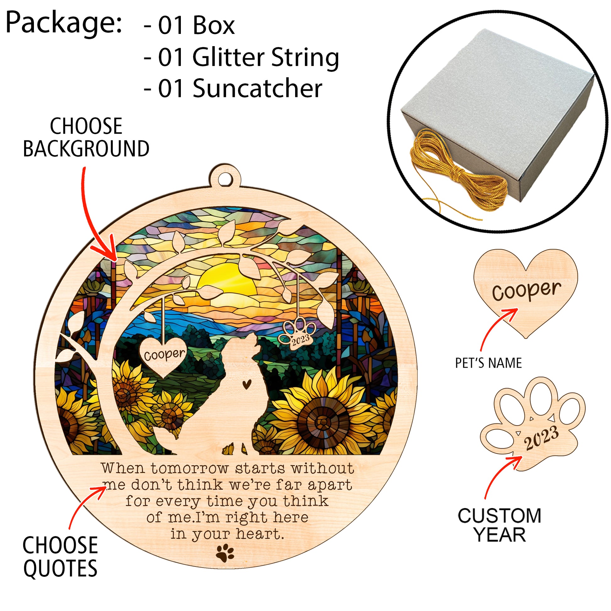 Losing a furry friend can be one of the hardest experiences we go through. The love and companionship they provide are truly irreplaceable, and their absence can leave a void in our lives. Our handcrafted Personalized Memorial Sun Catcher is a beautiful tribute to honor your beloved dog who has crossed the Rainbow Bridge. The cute and unique design helps you always remember the unforgettable time spent with your dog.