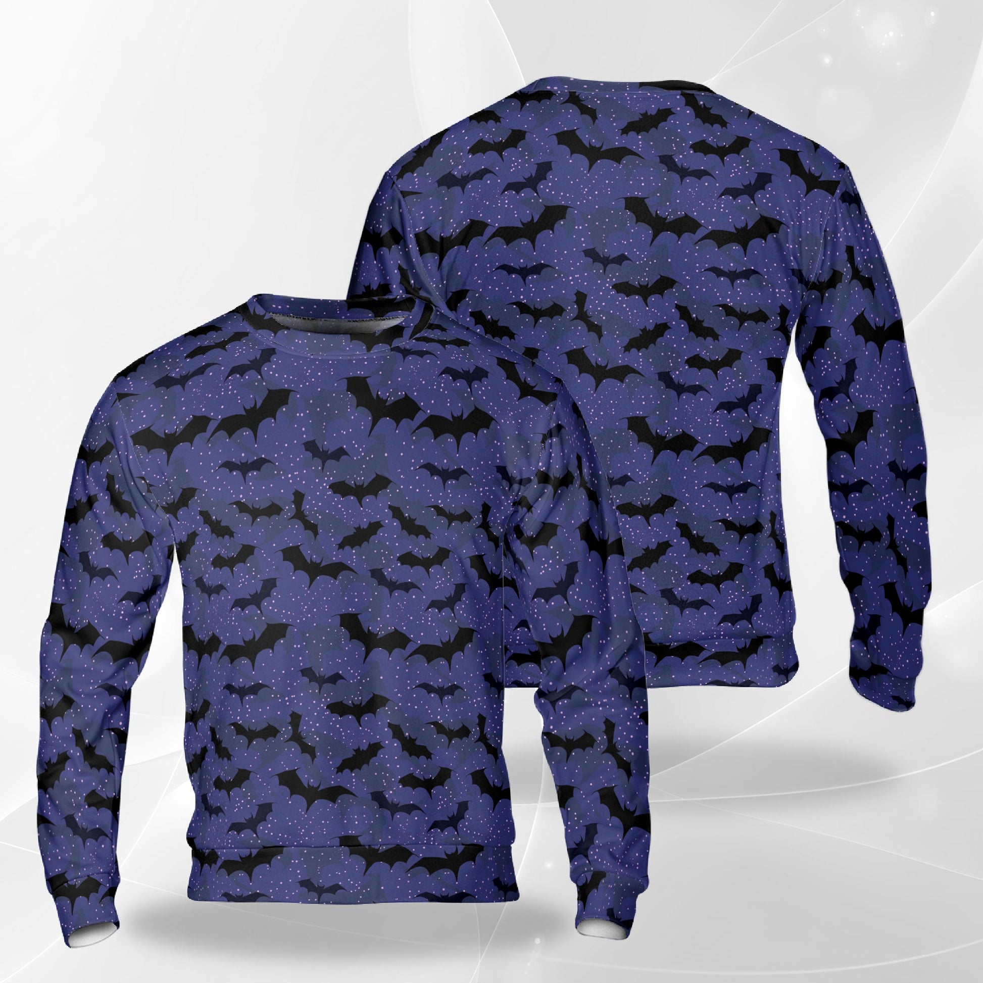 Netecom Halloween Bat Pattern Sweatshirt 3D All Over Print, Spooky Night Outfit, Crewneck Pullover for Costume Party