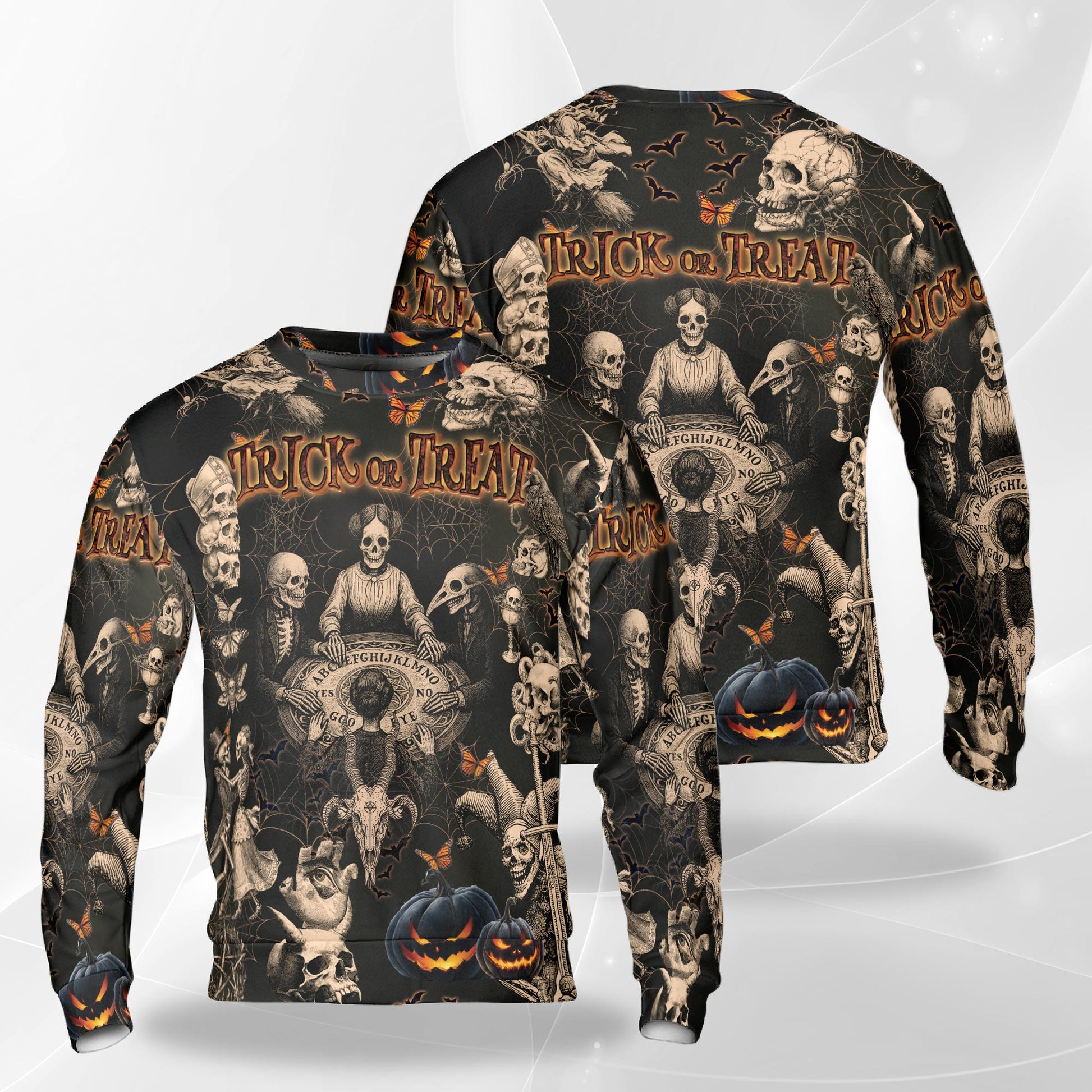 Netecom Halloween Skeleton Sweatshirt 3D All Over Print, Gothic Trick or Treat Design, Crewneck Pullover for Costume Party