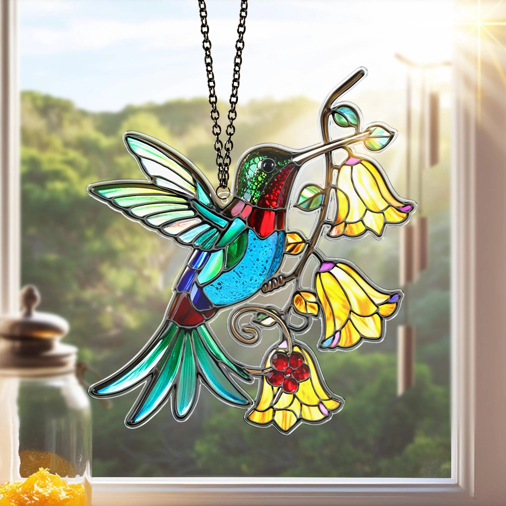 Netecom Hummingbird Acrylic Suncatcher – Bird Flower Window Hanging, Nature Lover Gift, Vibrant Garden Decor, Colorful Hummingbird Window Hangings