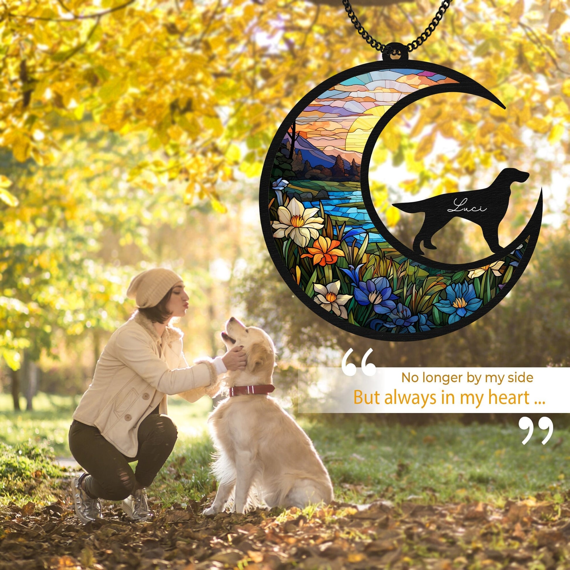 Honor the memory of your cherished dog with this beautifully crafted wooden memorial suncatcher, designed to offer comfort and warmth during moments of loss. Made from high-quality wood with detailed engraved artwork, this keepsake serves as a meaningful tribute to the love and joy your furry friend brought into your life.
