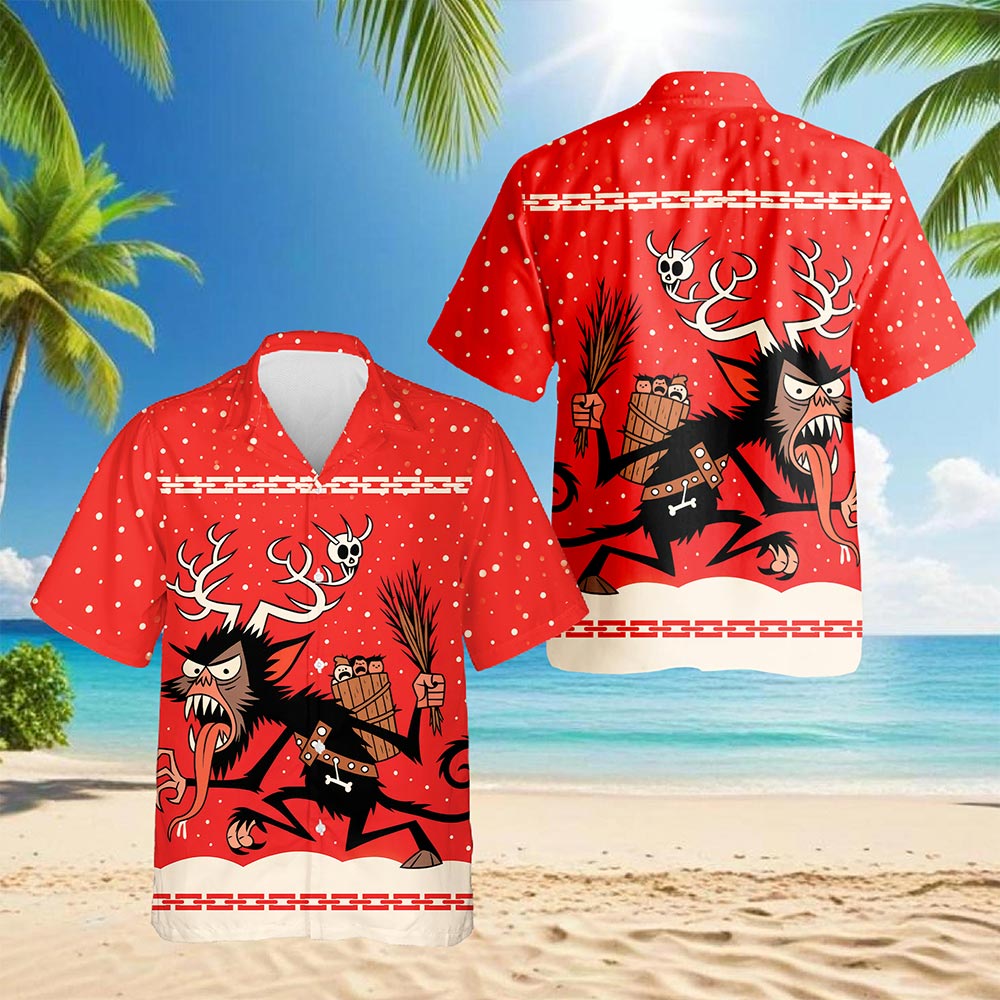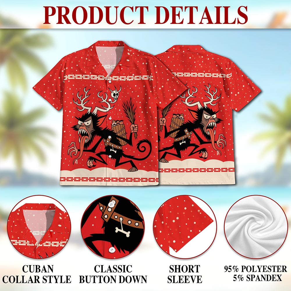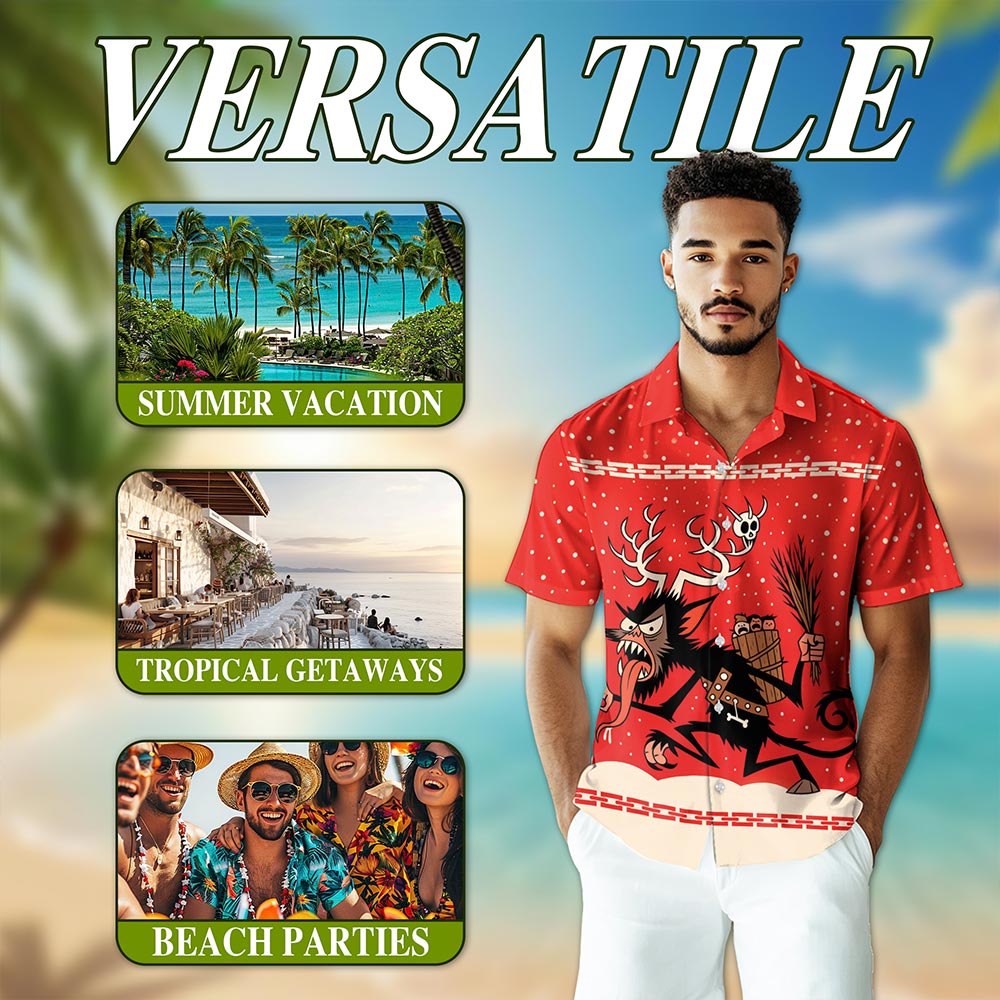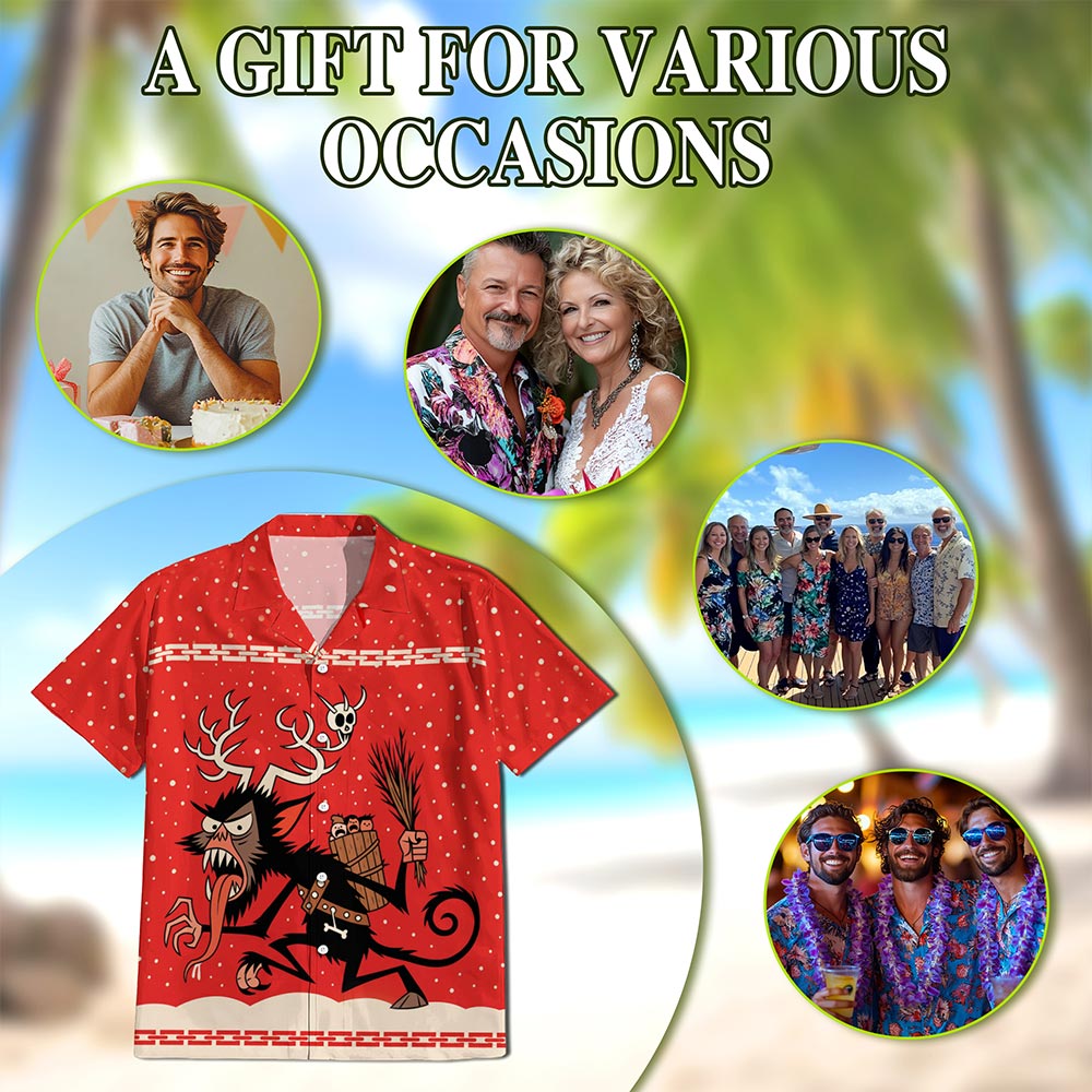 Netecom Krampus Christmas Hawaiian Shirt for Men Women, Demon Santa Print Button Down Summer Beach Short Sleeve Shirts, S-5XL