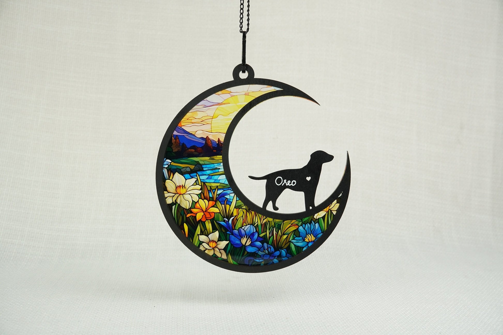 Netecom Labrador Retriever Dog Memorial Suncatcher – Personalized Pet Loss Sympathy Gift, Personalized Dog Passing Ornament, Acrylic and Wood Remembrance Decoration