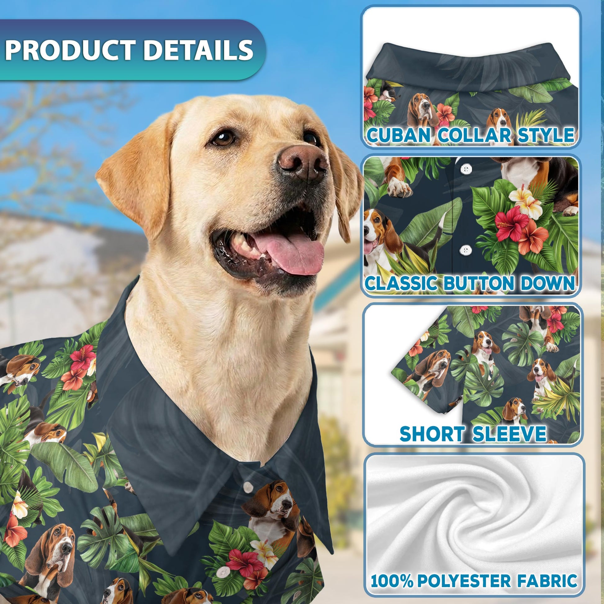 Netecom Matching Basset Hound Aloha Hawaiian Shirt for Dog and Owner, Aloha Summer Shirt, Funny Dog Print Outfit for Pet and Human, Beach Vacation Casual Wear