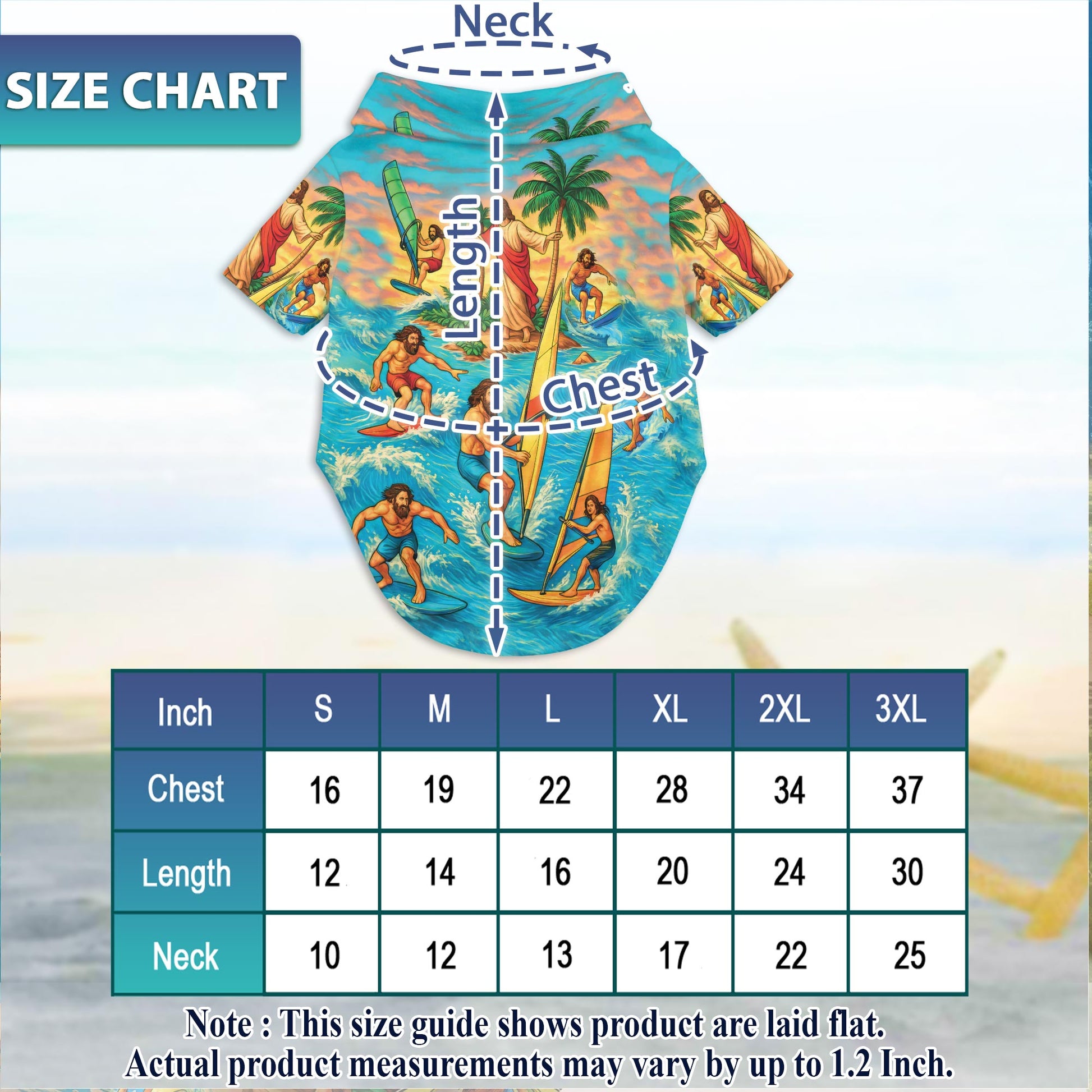 Netecom Matching Funny Jesus Surfing Hawaiian Shirt for Dog and Owner, Aloha Summer Shirt, Surf Wave Print Outfit for Pet and Human, Beach Vacation Casual Wear